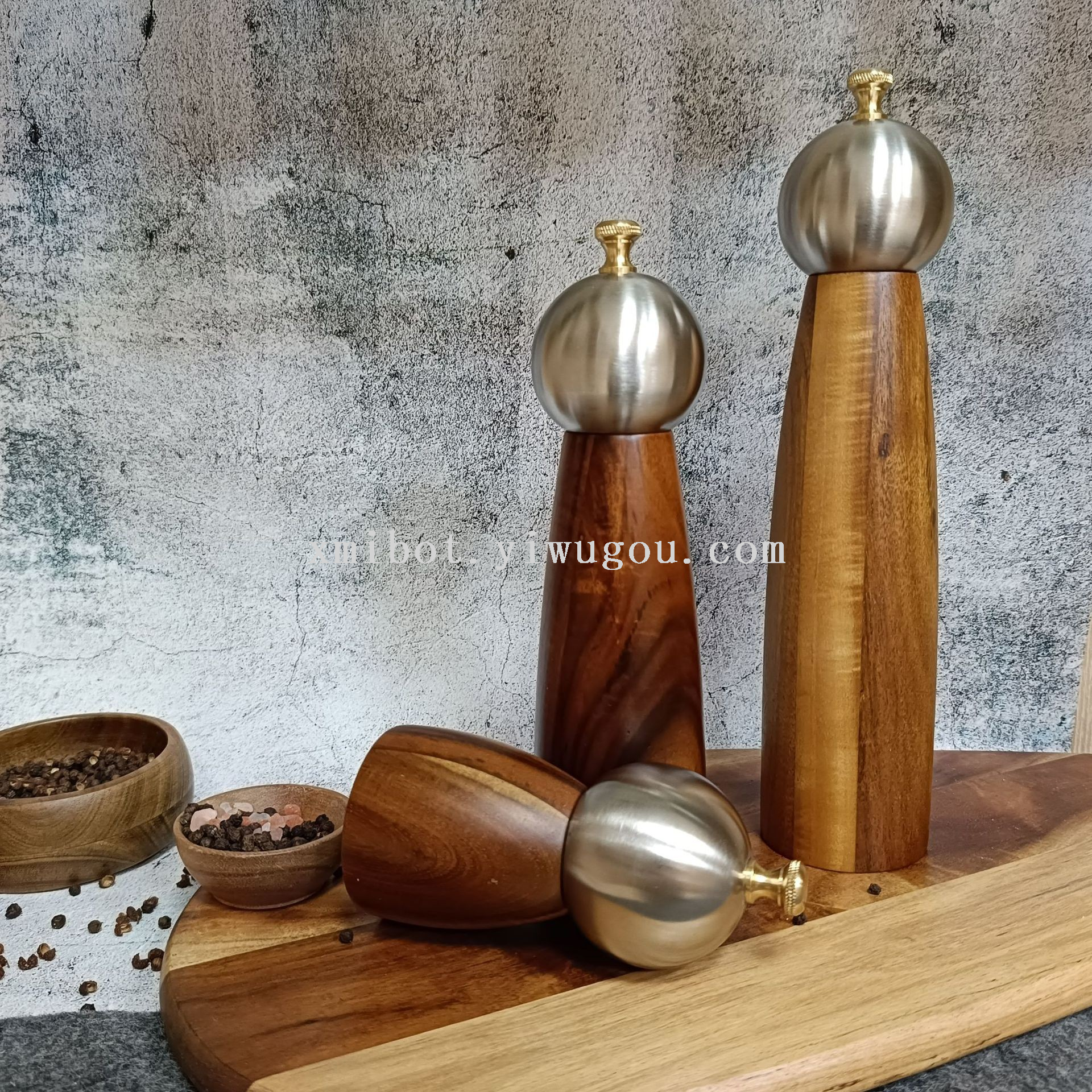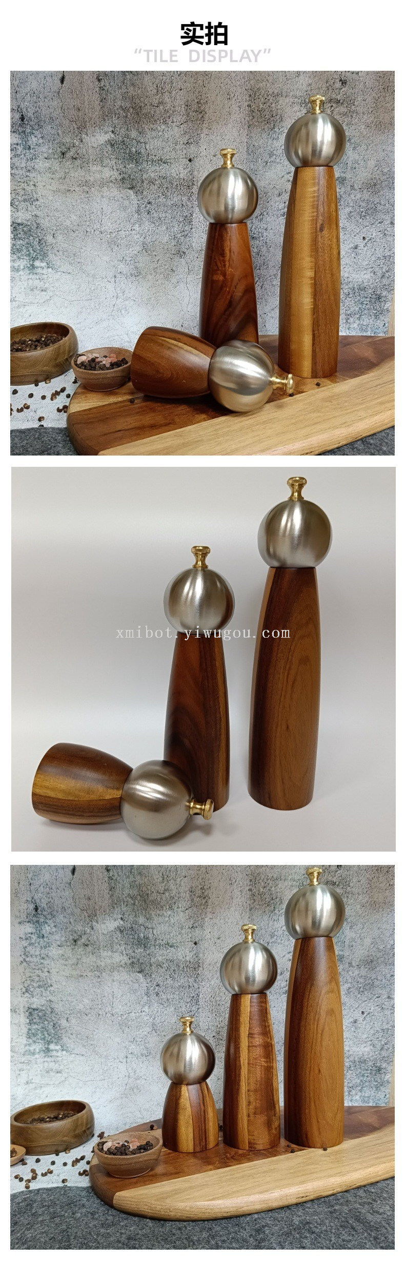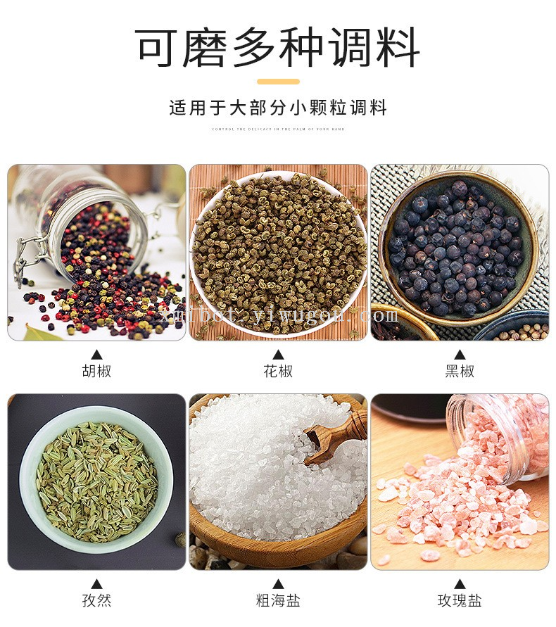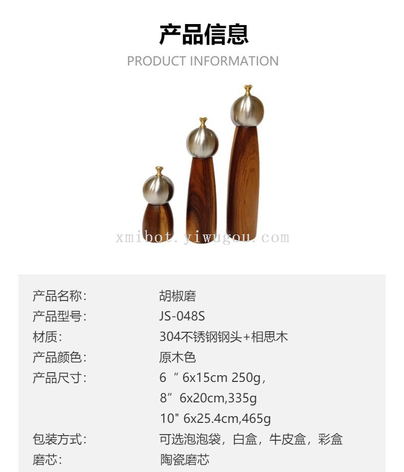 Stainless Steel Head Wood Bottle Body Pepper Grinder Manual Pepper Mill Golden Cap Spice Jar 中文版