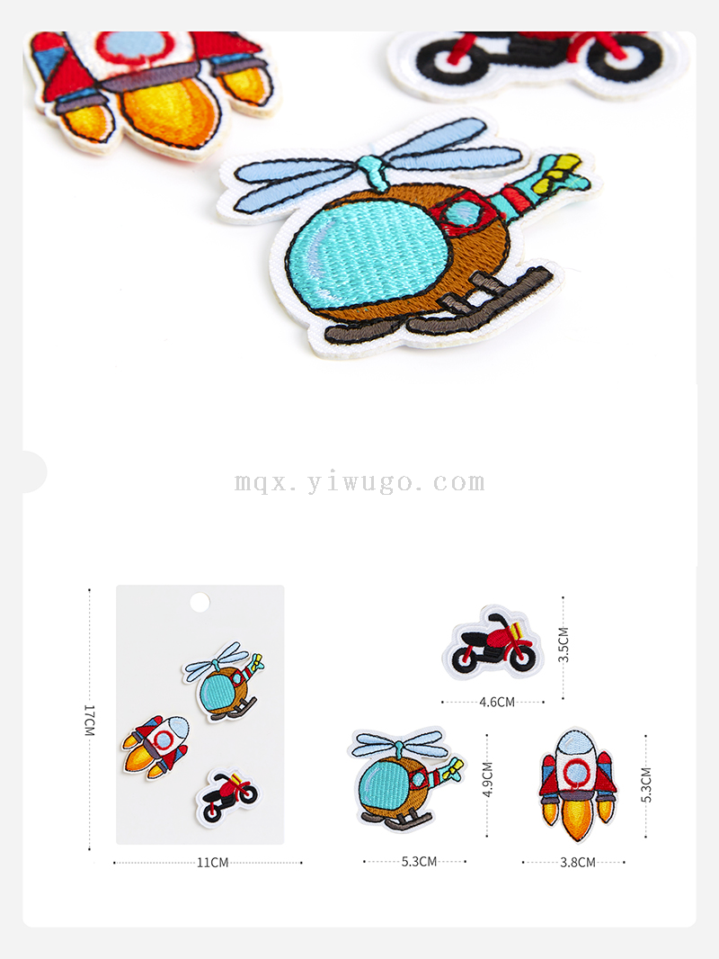 aircraft rocket car sailboat ship bicycle electric car excavator sewing badge clothes patch cloth sticker hot melt