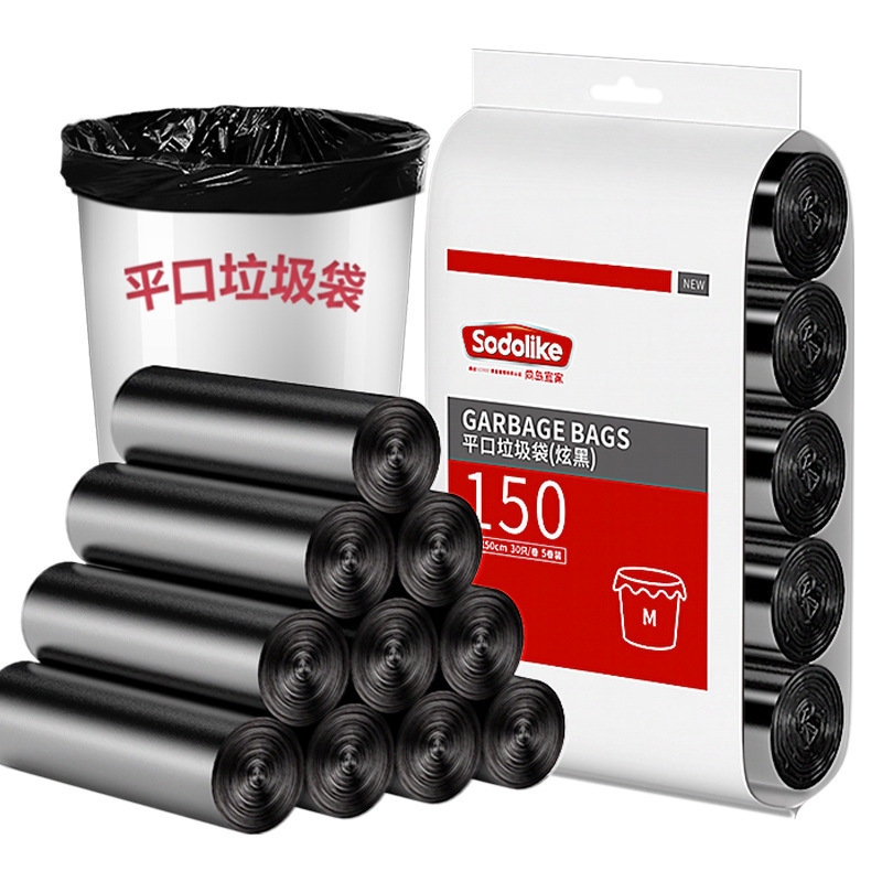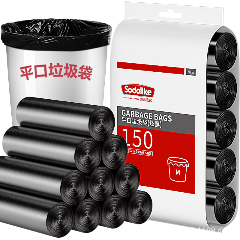 Garbage Bag Flat Mouth 150 Pcs Black Disposable Garbage Bag Kitchen Living Room Bathroom Flat Mouth Garbage Bag Wholesale