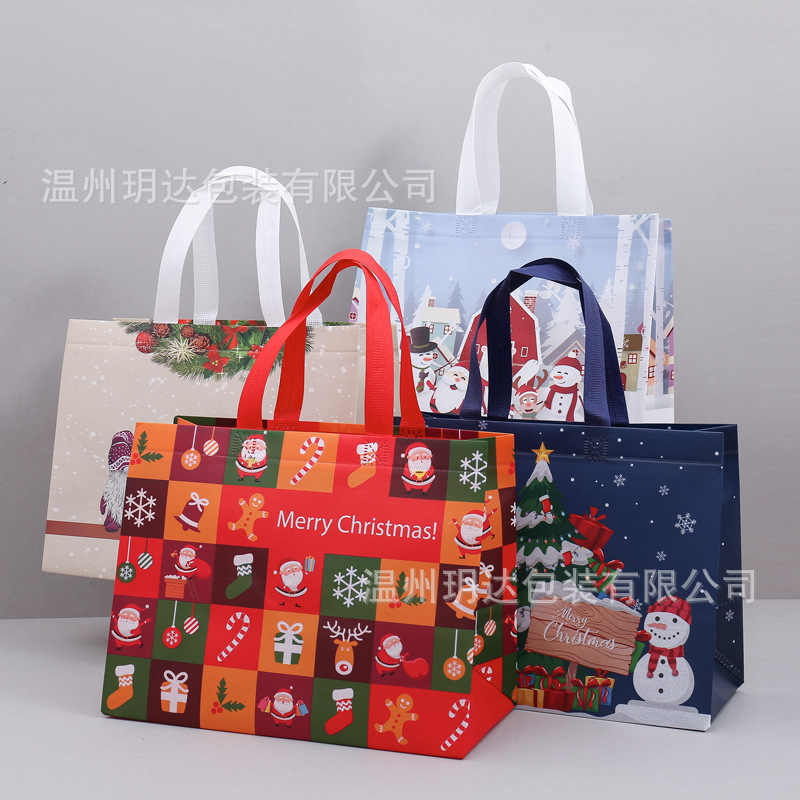 Amazon Christmas Tote Bag Custom Cartoon Santa Snowman Film Non-Woven Fabric Gift Bag Spot 中文版