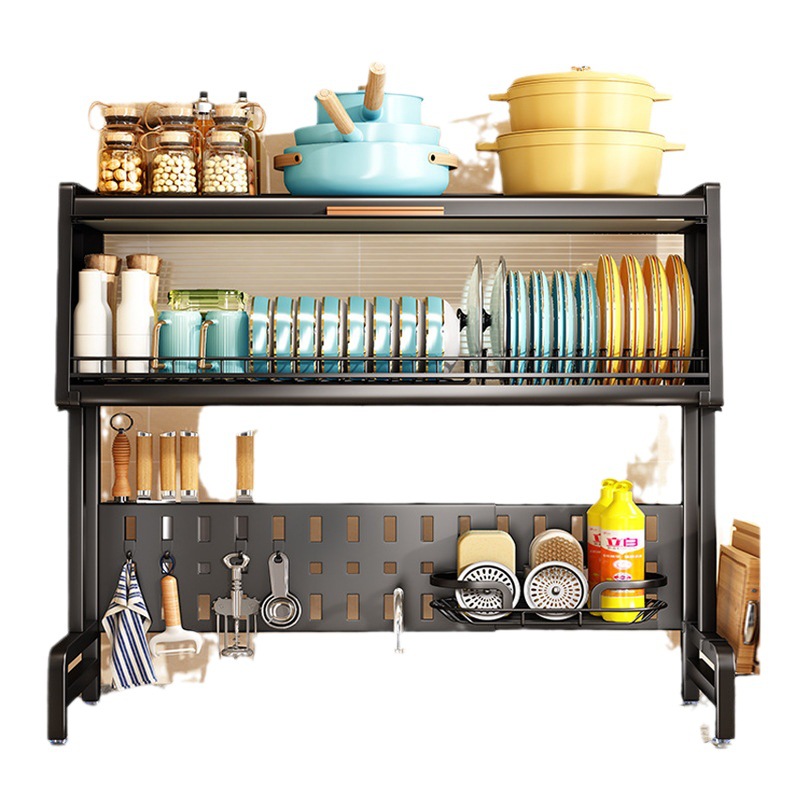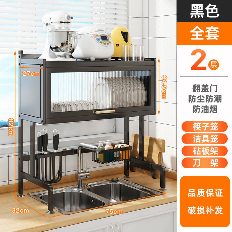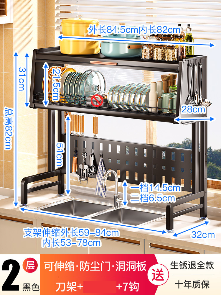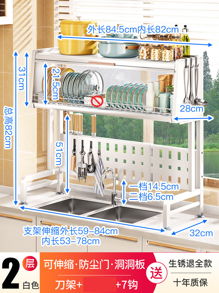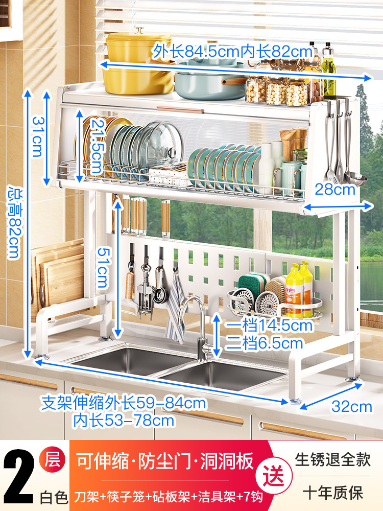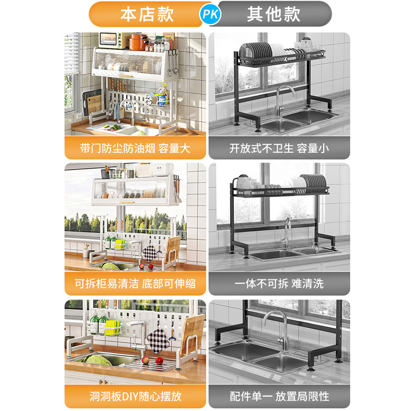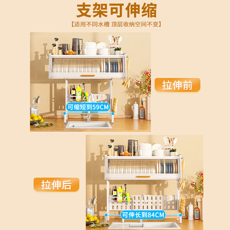 sink storage shelf retractable kitchen dish rack dust storage rack with cabinet door household bowl dish plate storage rack 中文版