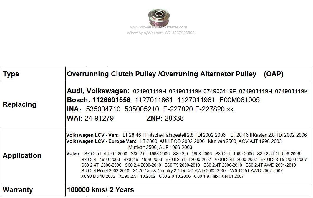 535004710 535005210 F-227820 24-91279 F00m061005 021903119h Alternator Overrunning Clutch Pulley 中文版