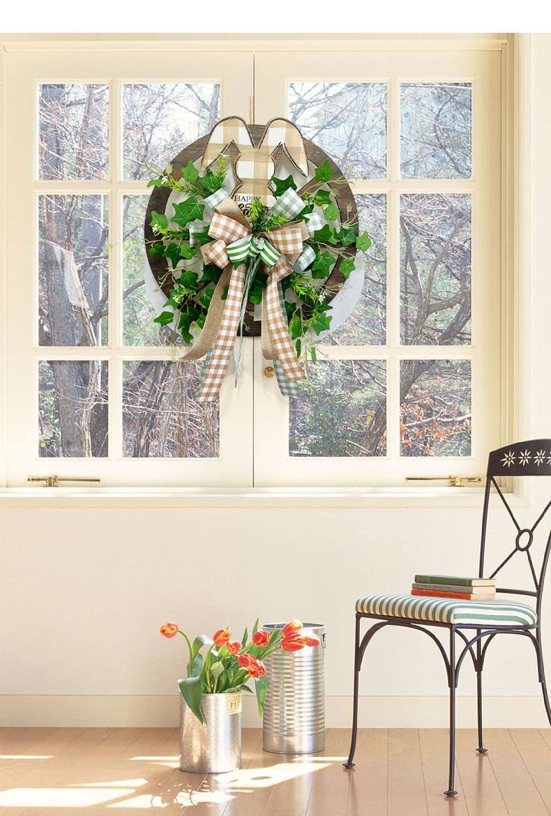 2024 easter rabbit wooden wheel garland holiday atmosphere dress up props front door ornaments window pendant cross-border