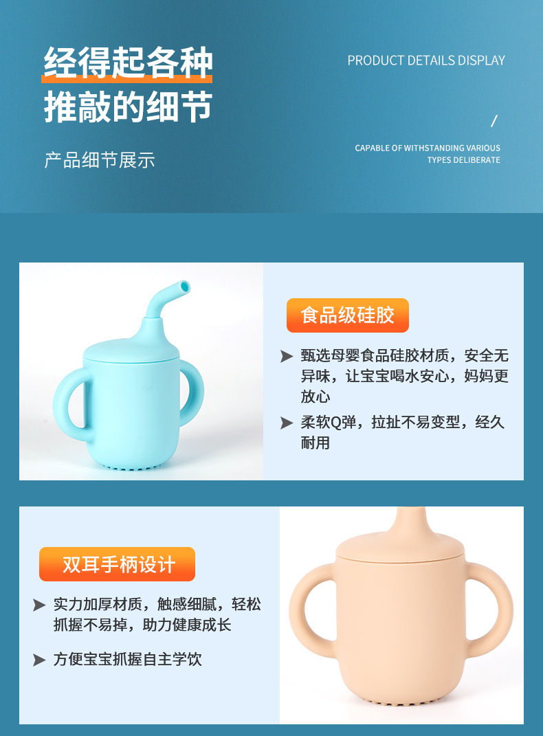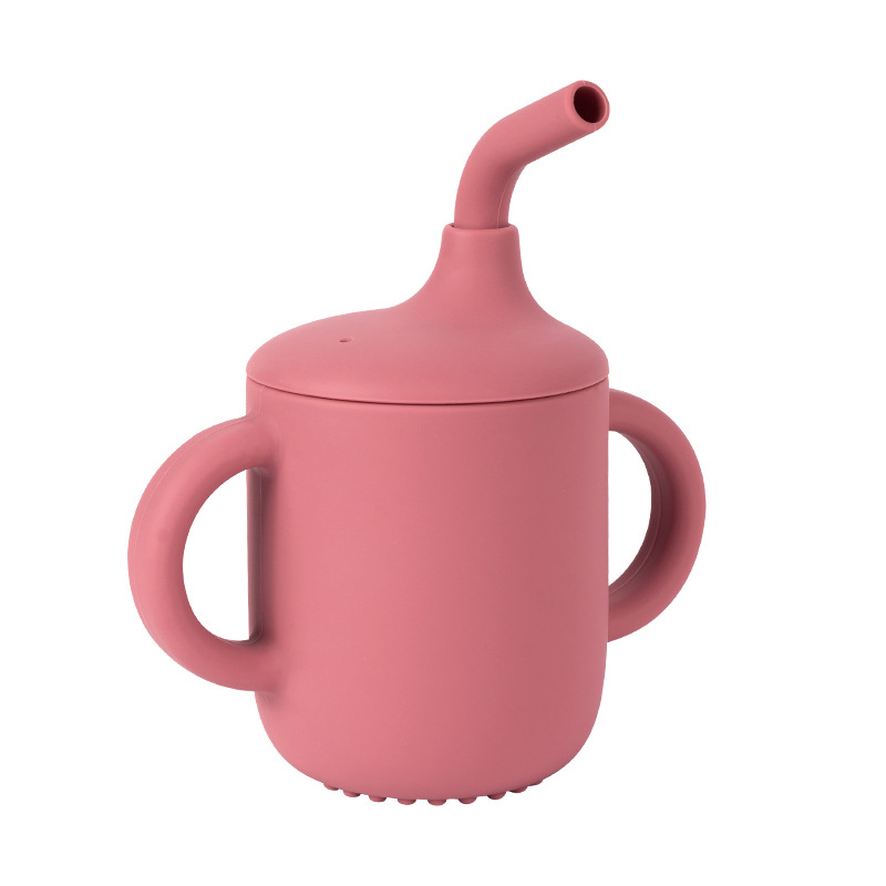 children's silicone straw cup leak-proof shatter proof cup infant no-spill cup training suction cup baby supplementary food cup