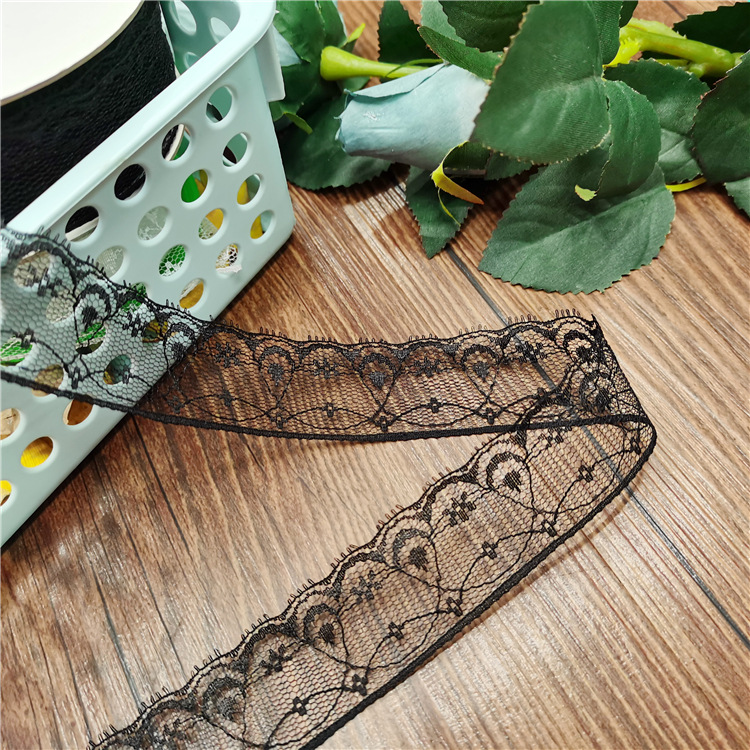 This item is a non-stretch lacy edge with a typical soft and pliable feel, and it is quite thin. It is widely used in various types of clothing, scarf, and accessory decorations.