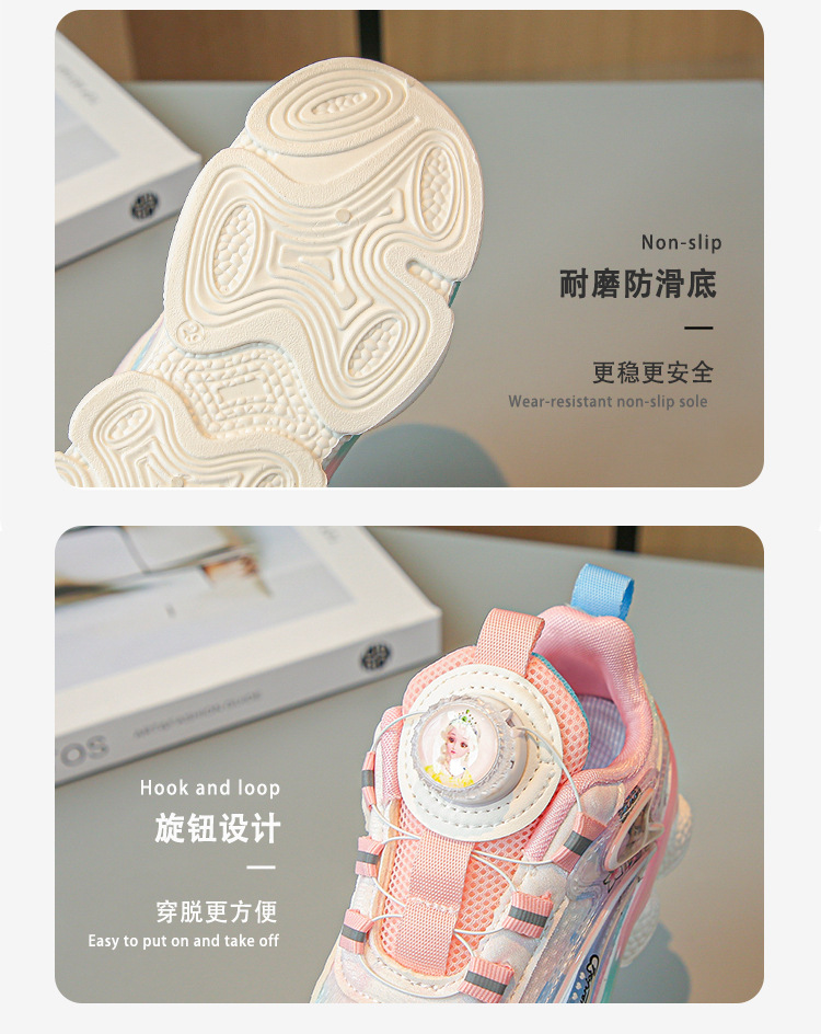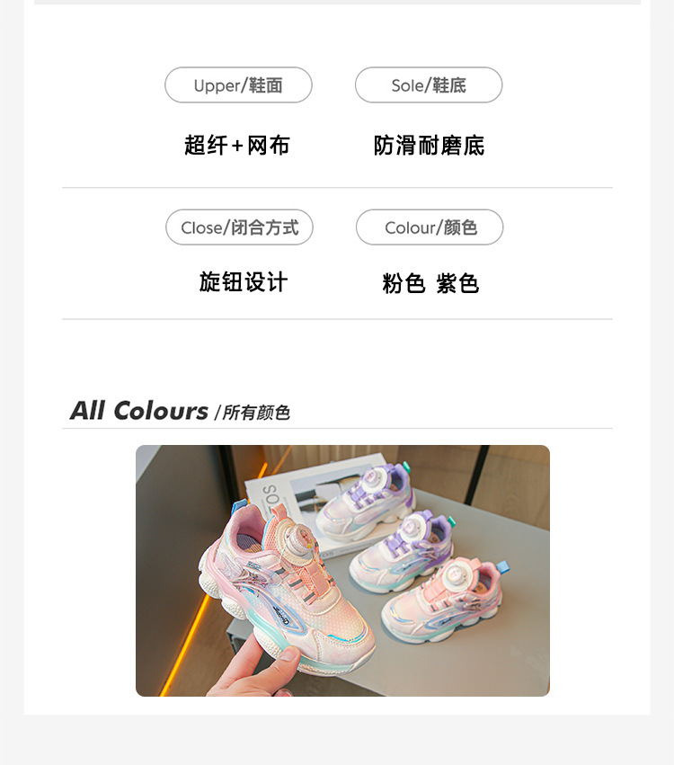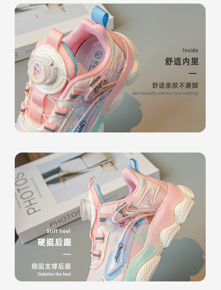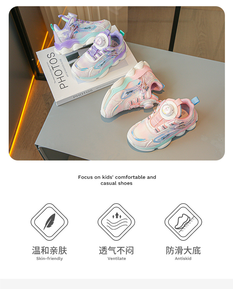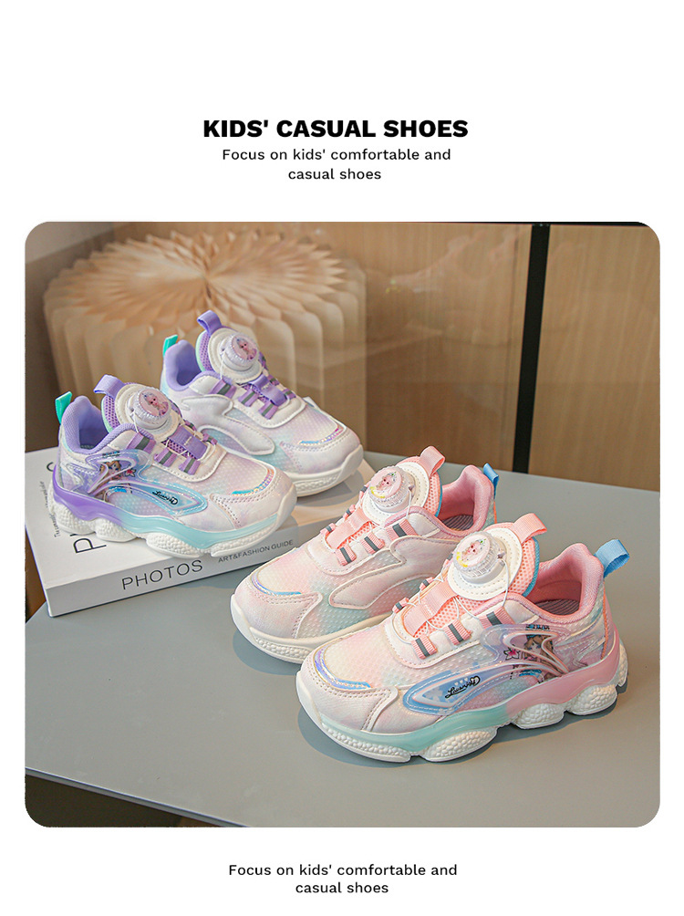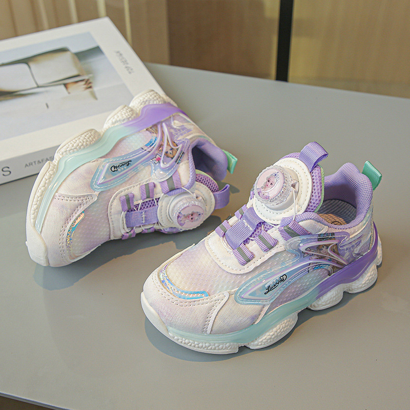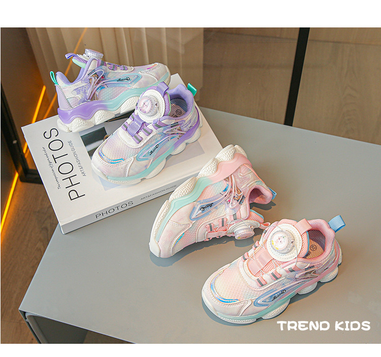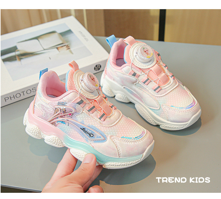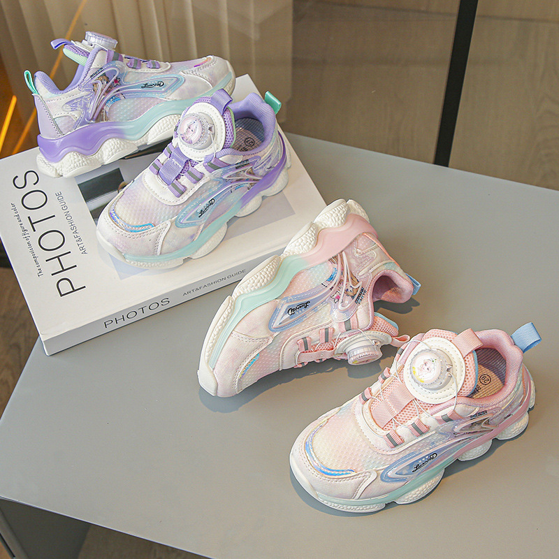 fashion spring autumn new rotating shoe buckle girls' shoes big children running shoes breathable mesh children sneaker