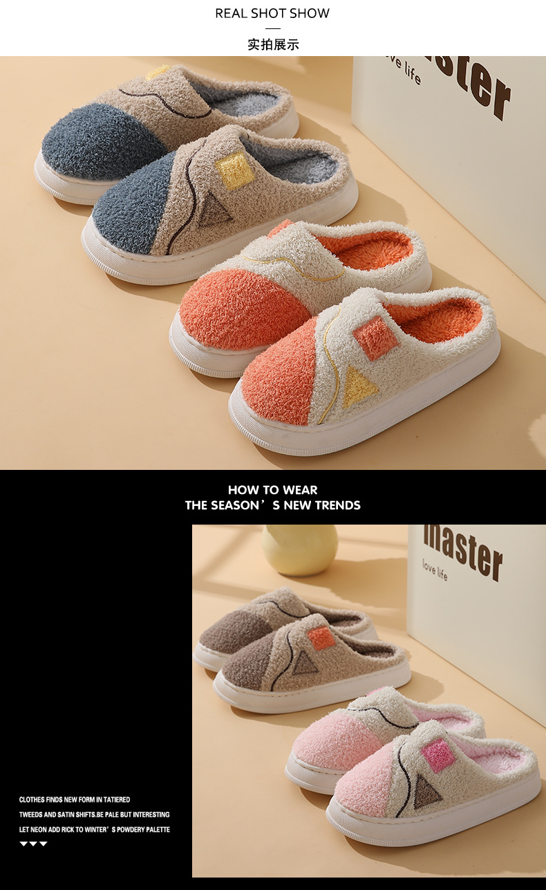 2024 new warm cotton slippers warm women's indoor home reception cotton slippers cute non-slip thick-soled cotton slippers wholesale 中文版
