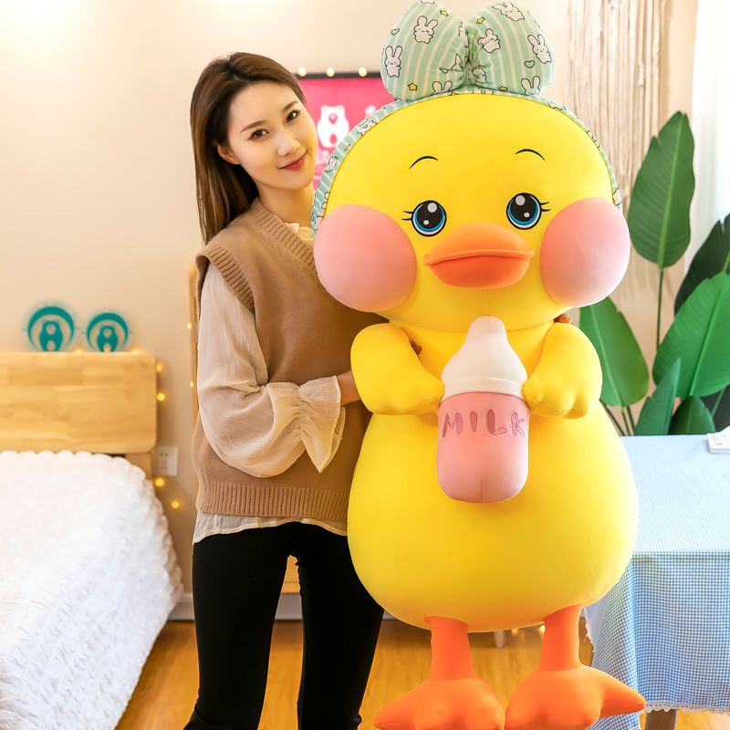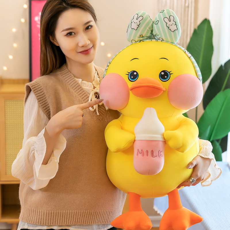 Sound same bottle duck plush toy cute yellow duck doll large size cloth doll female sleep pillow
