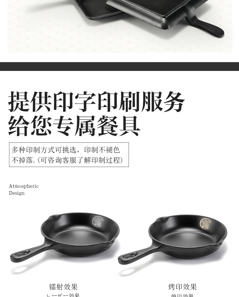 melamine tableware black frosted creative plate hot pot barbecue shop flat plate shovel pan with handle commercial