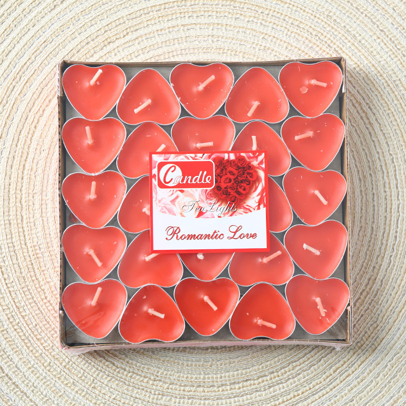 red peach heart tealight