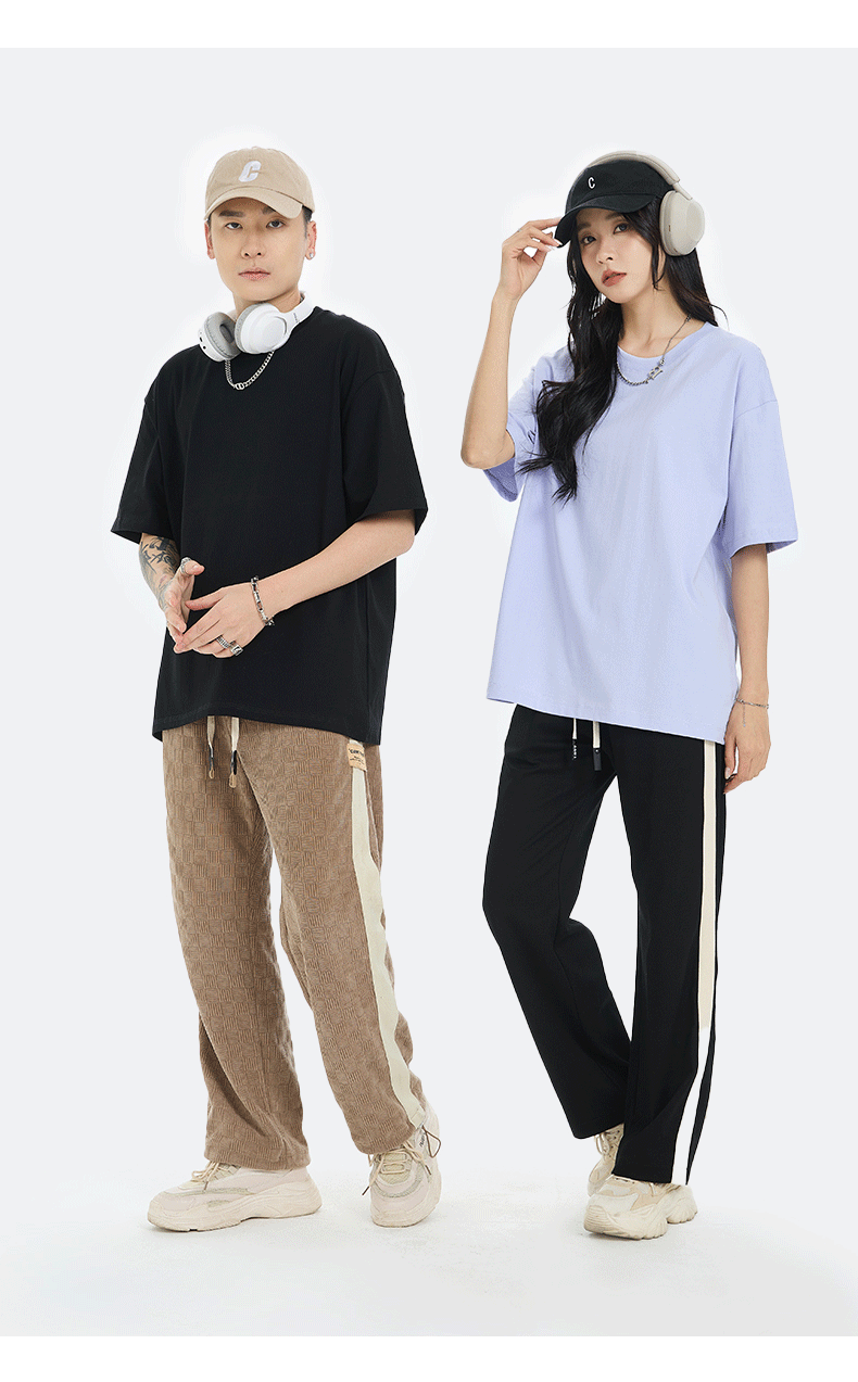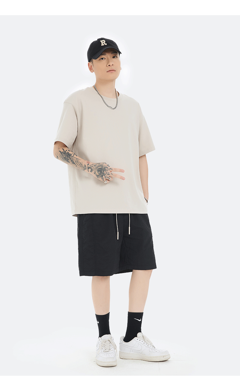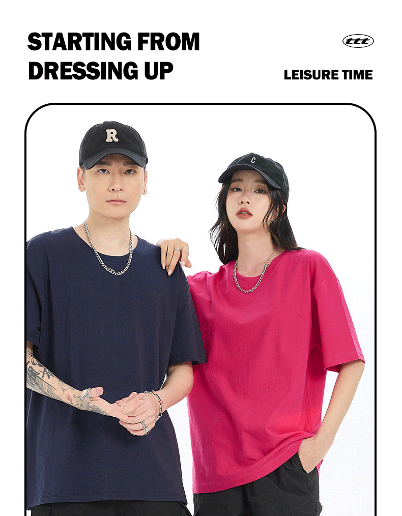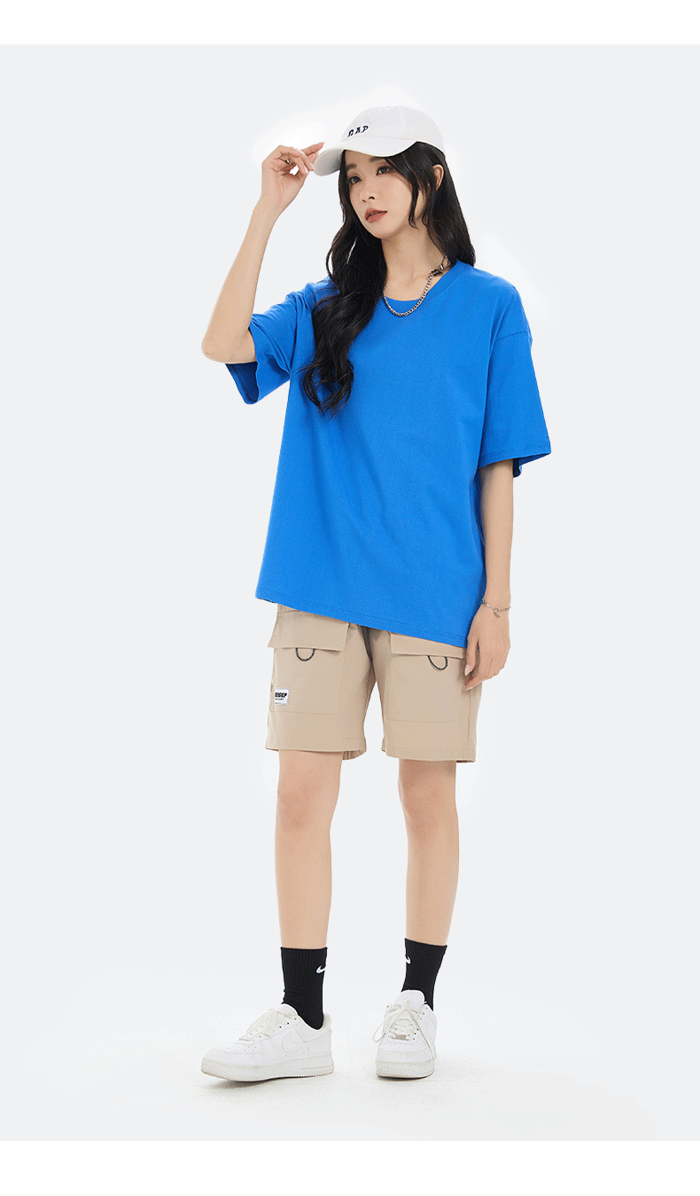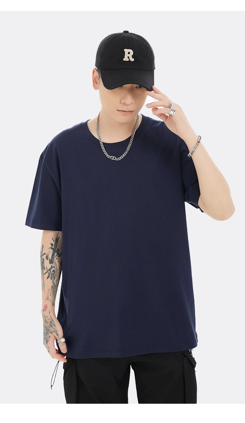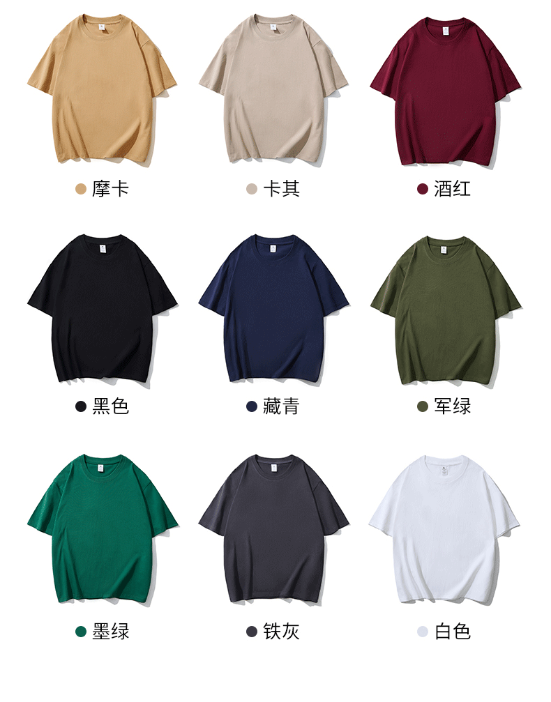 18 Color Heavy 230G High Version Cotton T-shirt Women's Shirt Short Sleeve Men's and Women's Same Loose Solid Color Fashion Brand Base 中文版