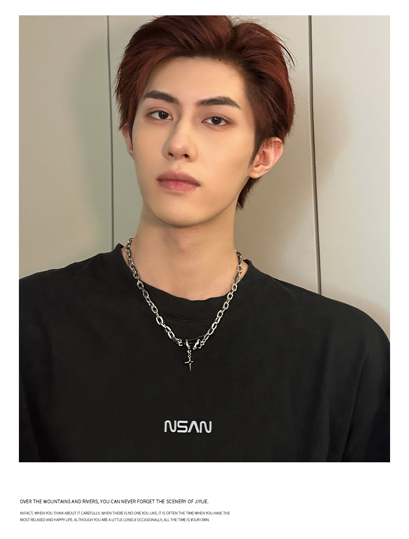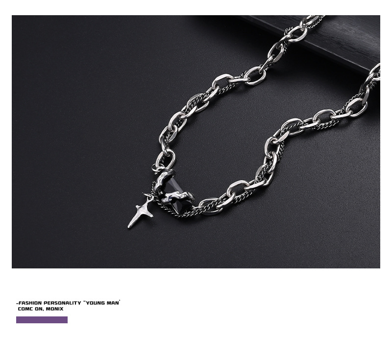 Titanium Steel Multi-Layer Winding Obsidian Necklace Men's Fashion Brand European Hip Hop Men's Accessories All-Match Cross Clavicle Women