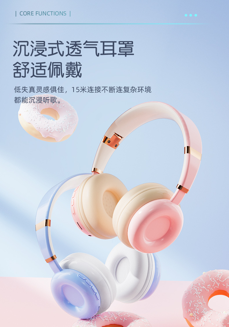 潮品电商新款糖果甜甜圈头戴式无线蓝牙耳机