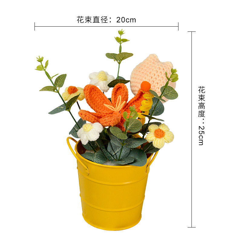 hand-woven sunflower wool bouquet flower pot finished knitted flower sanba women's god festival 38 birthday gift