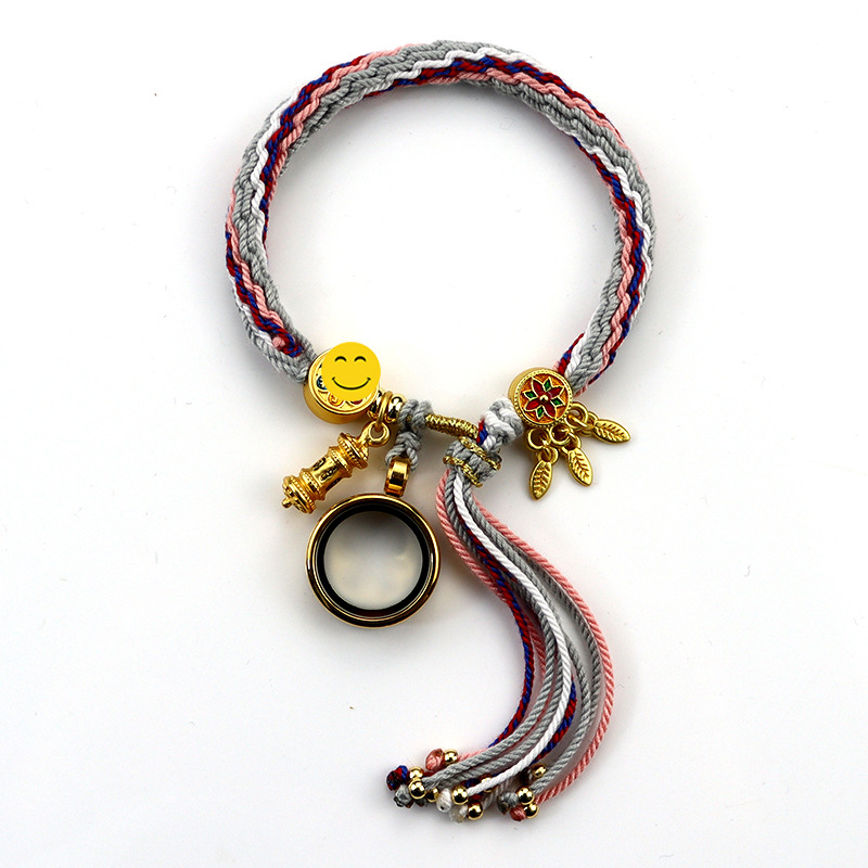 Thangka Tibetan Style Carrying Strap Hand Rub Cotton String Woven Bracelet Five Gods of Wealth Eyes Zachilam Green Tara Beads Thangka
