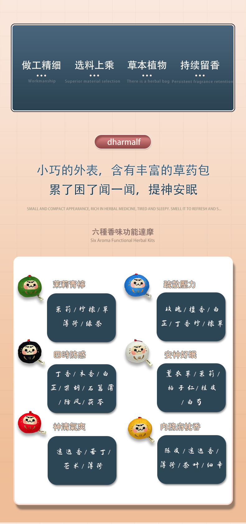 Cross-Border Original Cute Blind Box Damo Guardian Contains Herbal Essence Packs of Pinch Decompression Dumplings Pendant Gifts