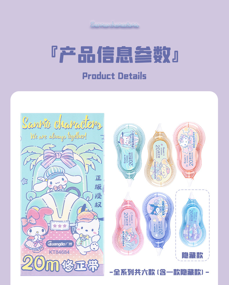 Guangbo Sanrio 20M Correction Tape-Blind Box Primary School Student Homework Test Paper Correction Correction Tape 20M