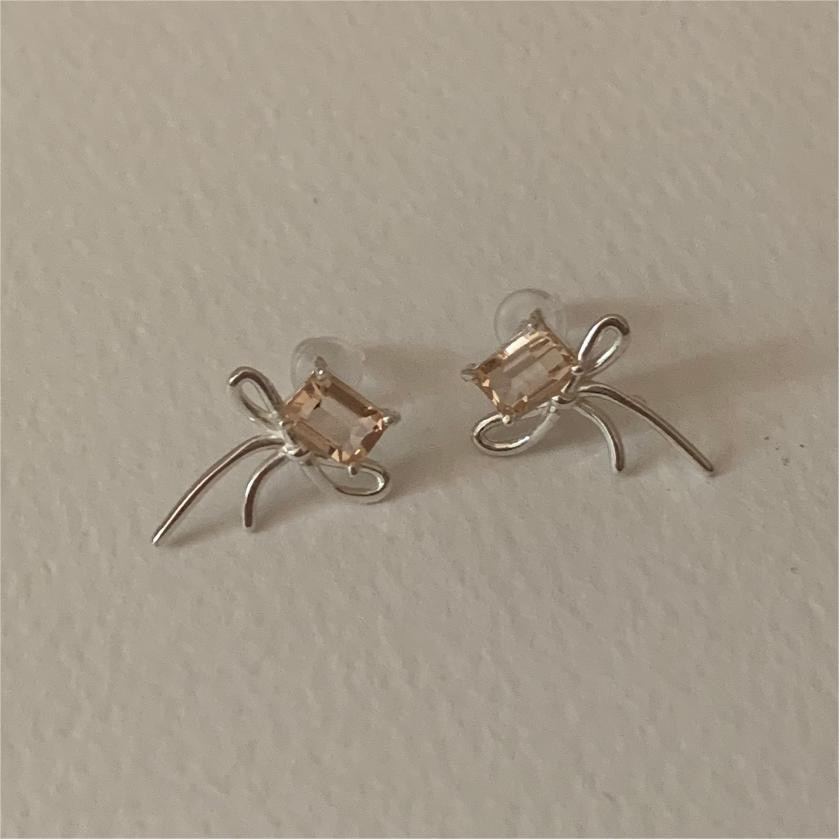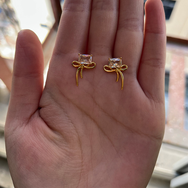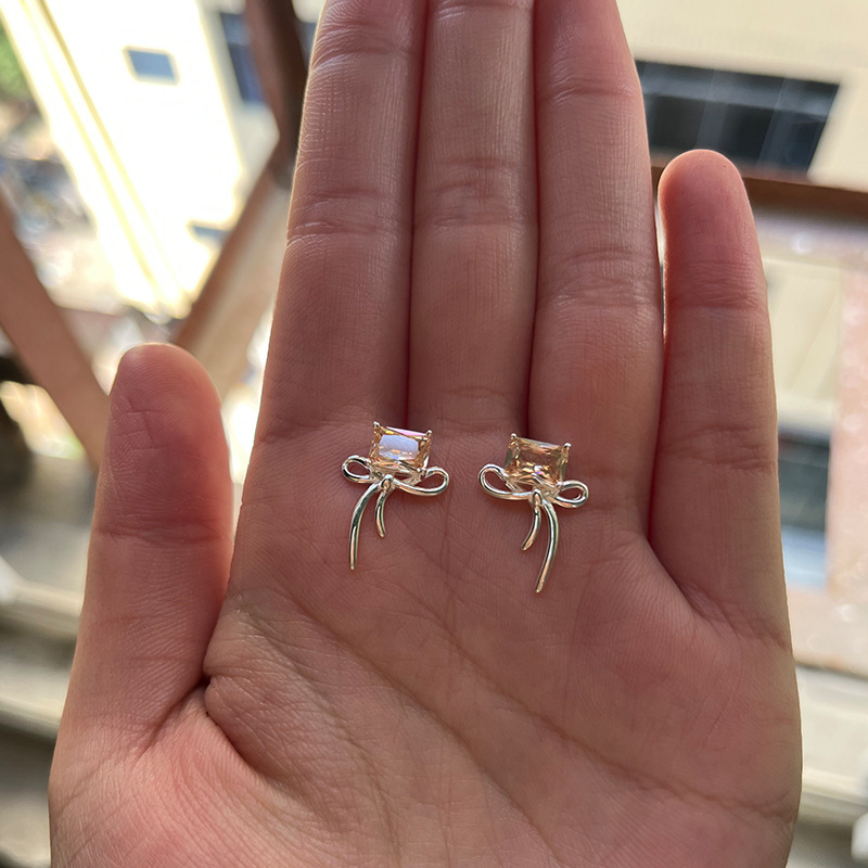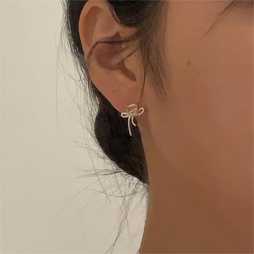 S925 Sterling Silver Bow Ear Studs Earrings Simple Cold Style Temperament Ins Style Zircon Korean Korean Earrings