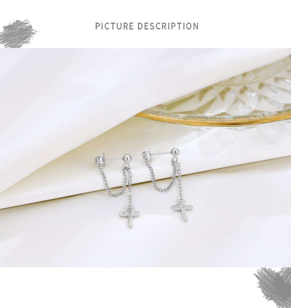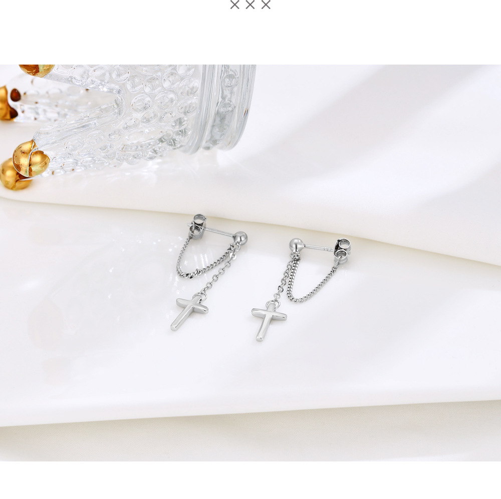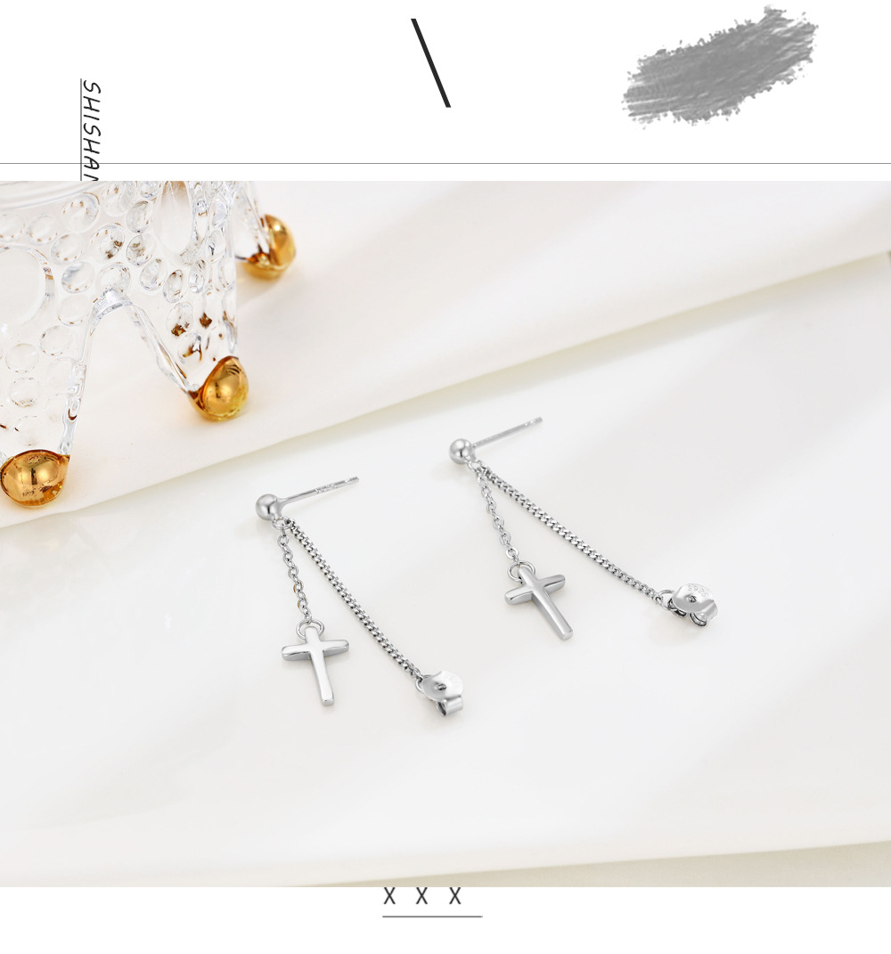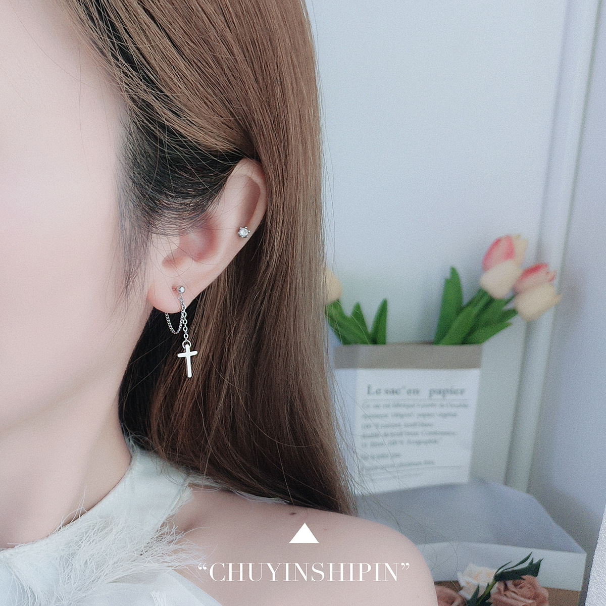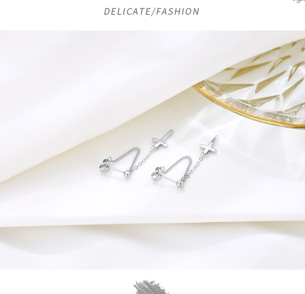 Niche Temperament Ornament S925 Sterling Silver Chain Cross Stud Earrings Korean Style Personalized Earrings Trendy Simple Earrings Women