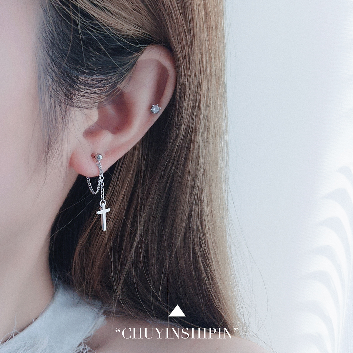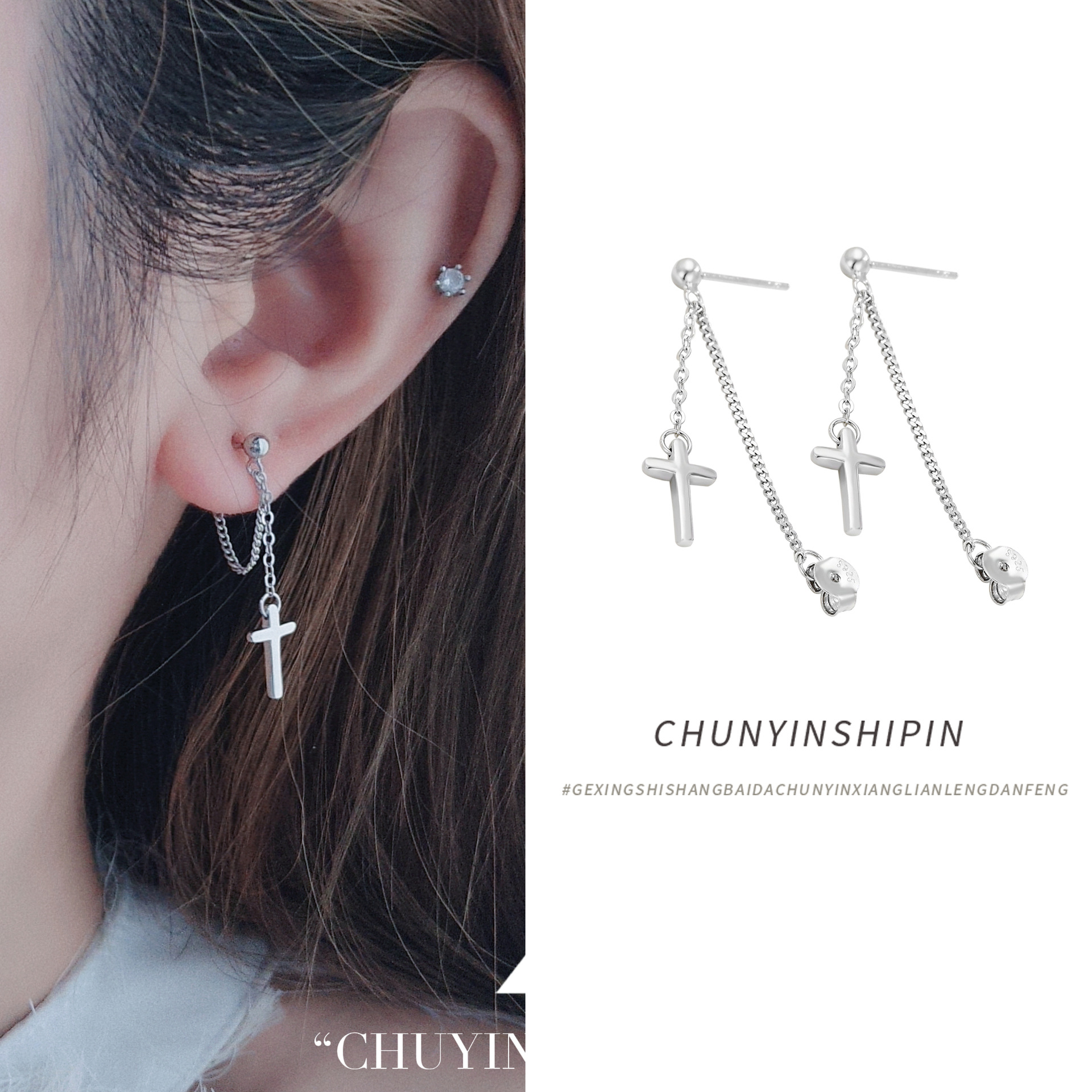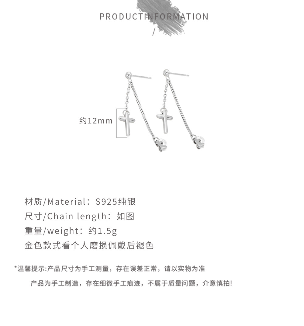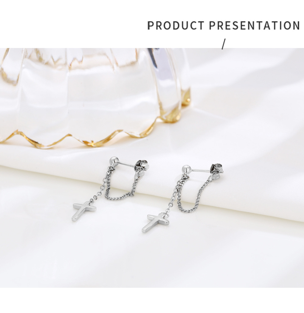 Niche Temperament Ornament S925 Sterling Silver Chain Cross Stud Earrings Korean Style Personalized Earrings Trendy Simple Earrings Women