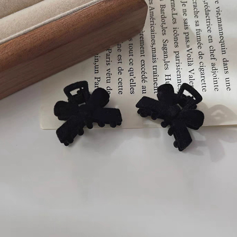 High-Grade Velvet Bow Small Jaw Clip Fringe Hairpin Retro Princess Clip Hairware Female Small Cropped Hair Clip Female