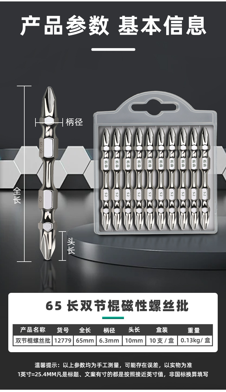 Tuosen Hardware Tools One-Word Cross Wind Screwdriver Double-Headed Screwdriver Electric Drill with Magnetic Screwdriver Electric S2 Impact Screwdriver