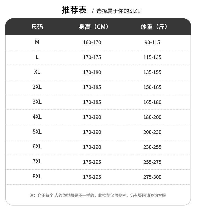 | XXXL170-185/200斤内 | ¥0.0 | 1993 piece available |