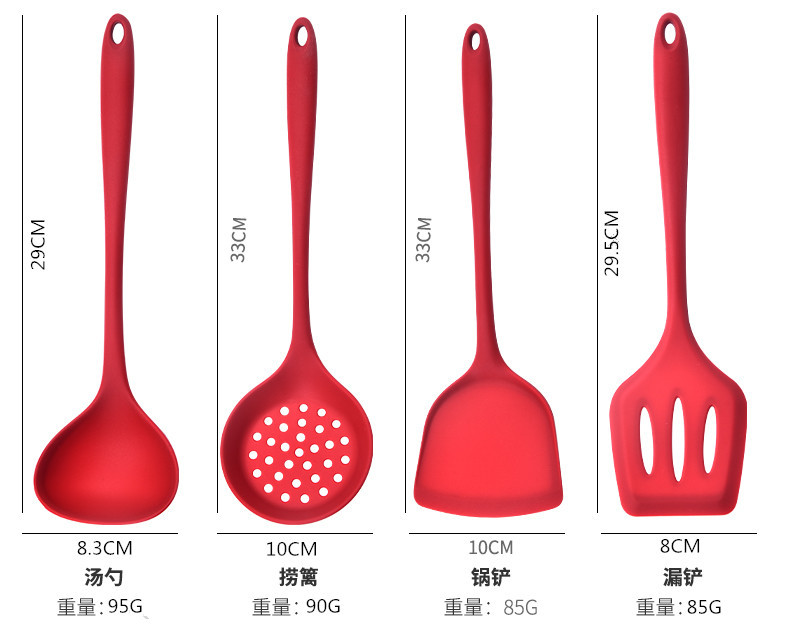 silicone five-piece kitchen ware set-red (color box package)