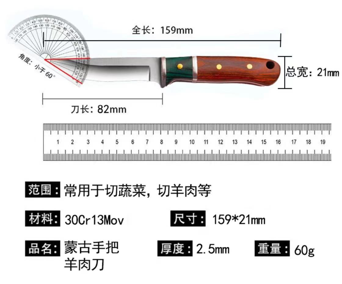 wooden handle mirror light pork knife