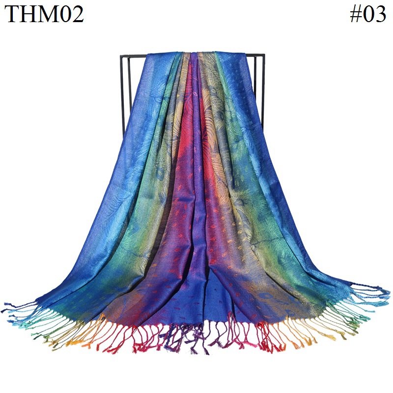 Cross-Border New Arrival Jacquard Cotton Scarf Women's Colorful Ethnic Style Travel Shawl Autumn and Winter Tassel Cotton Warm Scarf