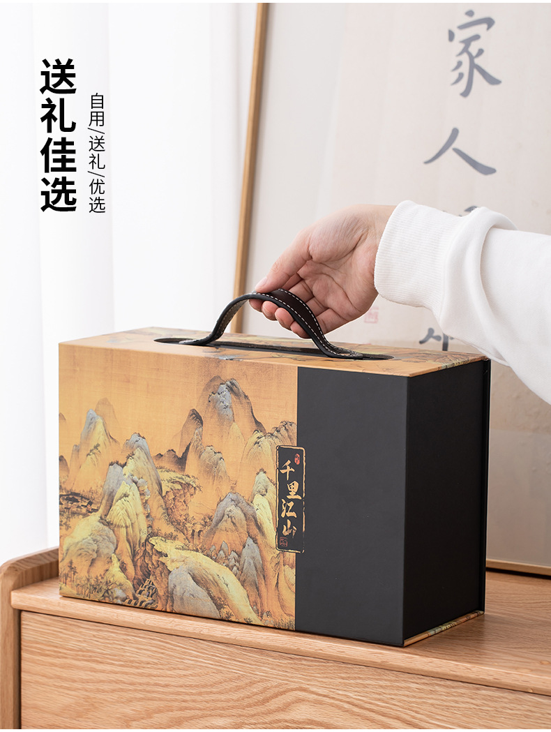 thousand-li landscape (black) side handle glass-mixed color cup gift box