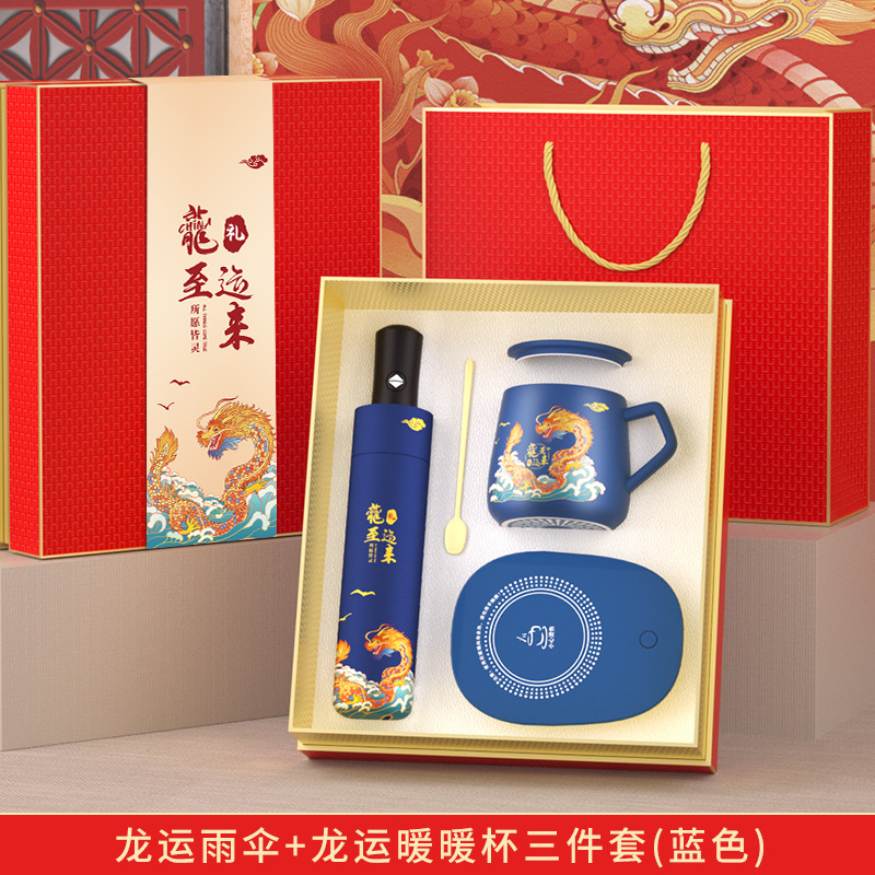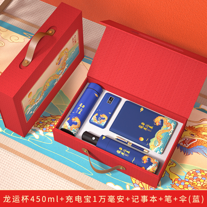 thermos cup + umbrella + power bank + pen + notebook + u disk-blue