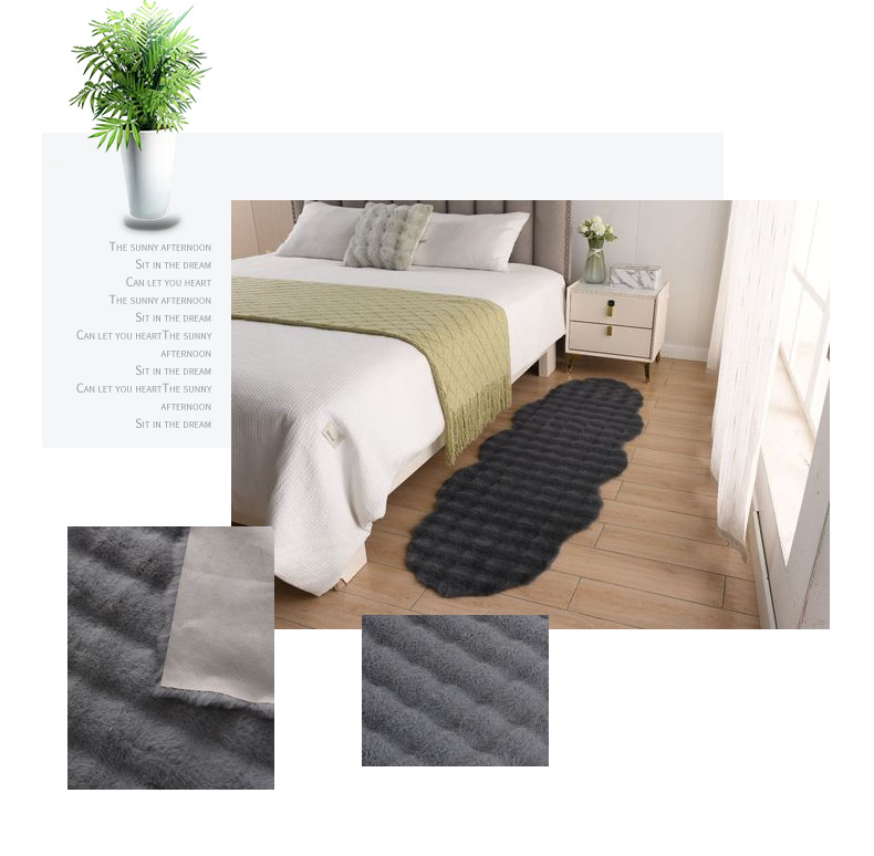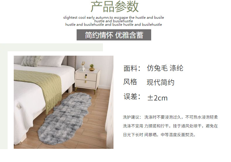 6.日常可用吸尘器,微脏可以用湿布擦拭,水洗务必使用地毯清洗剂或中性洗涤剂加水稀释后洗涤。注意阴干,风干,勿暴晒。