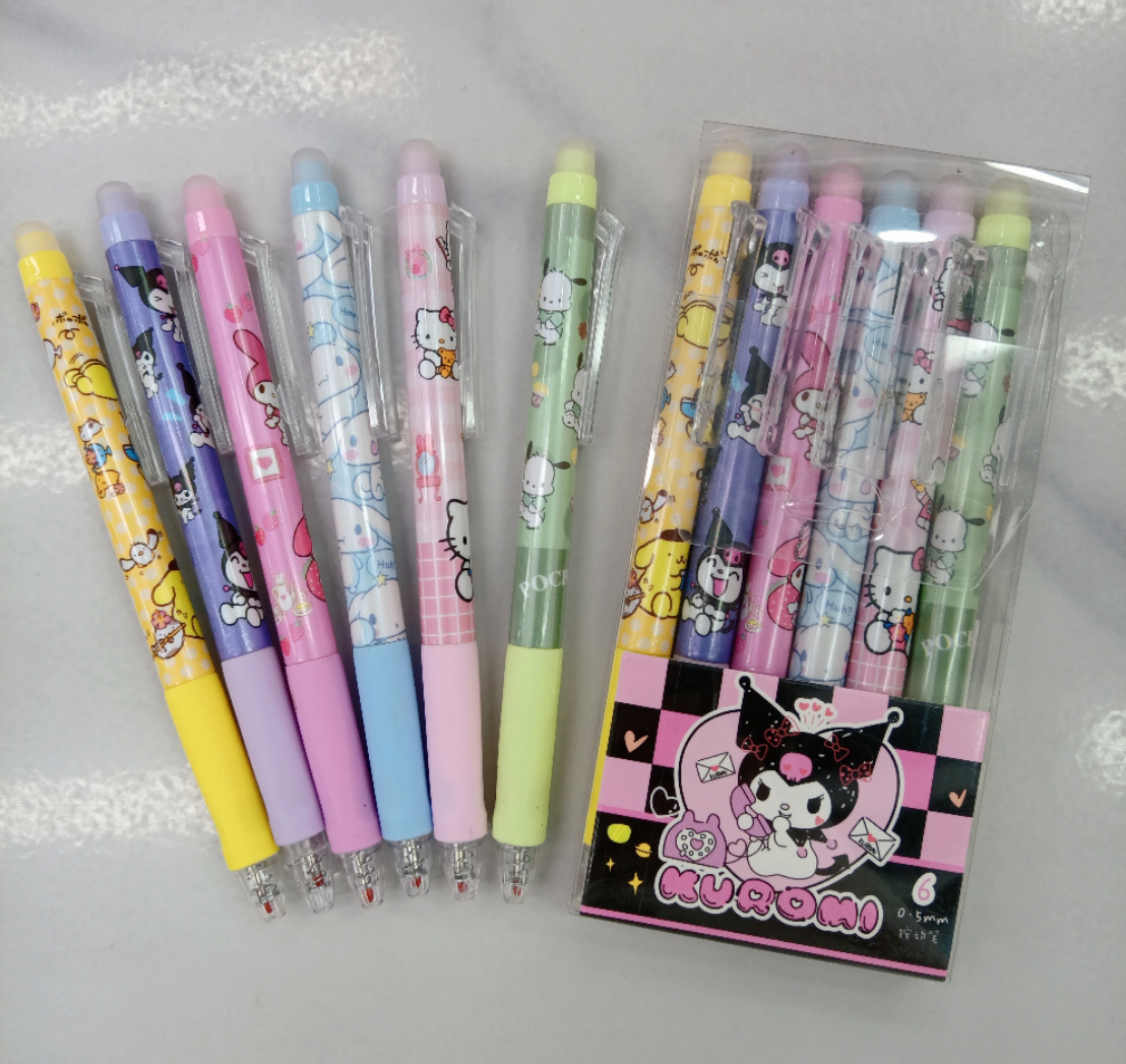 cartoon sanrio mixed color press erasable gel pen 中文版
