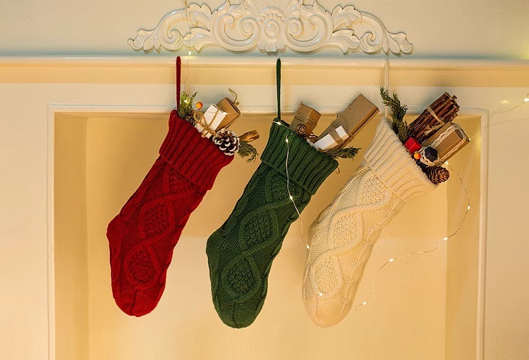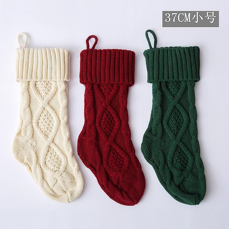 Christmas Stockings Foot Sock Scene Arrange Hangings Knitted Wool Candy Bag Rhombus Christmas Gift Bag Christmas Stockings Candy Bag