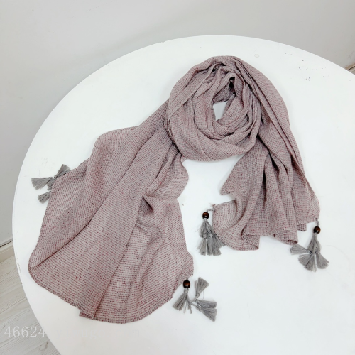 cross-border scarf wholesale e-commerce handmade ball scarf solid color scarf new linen scarf 中文版