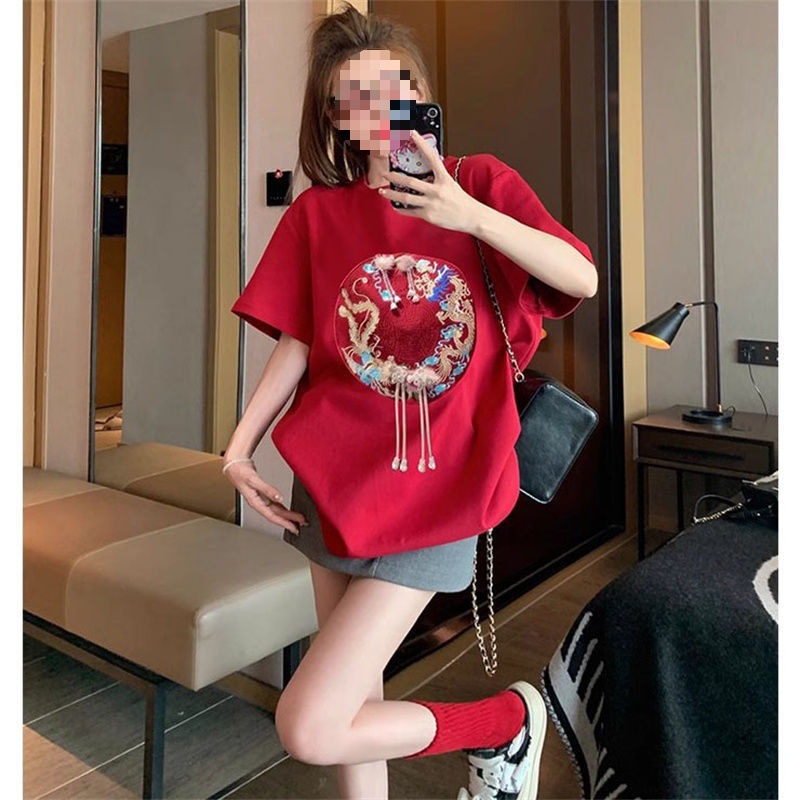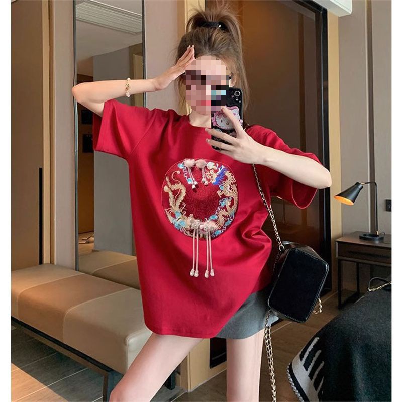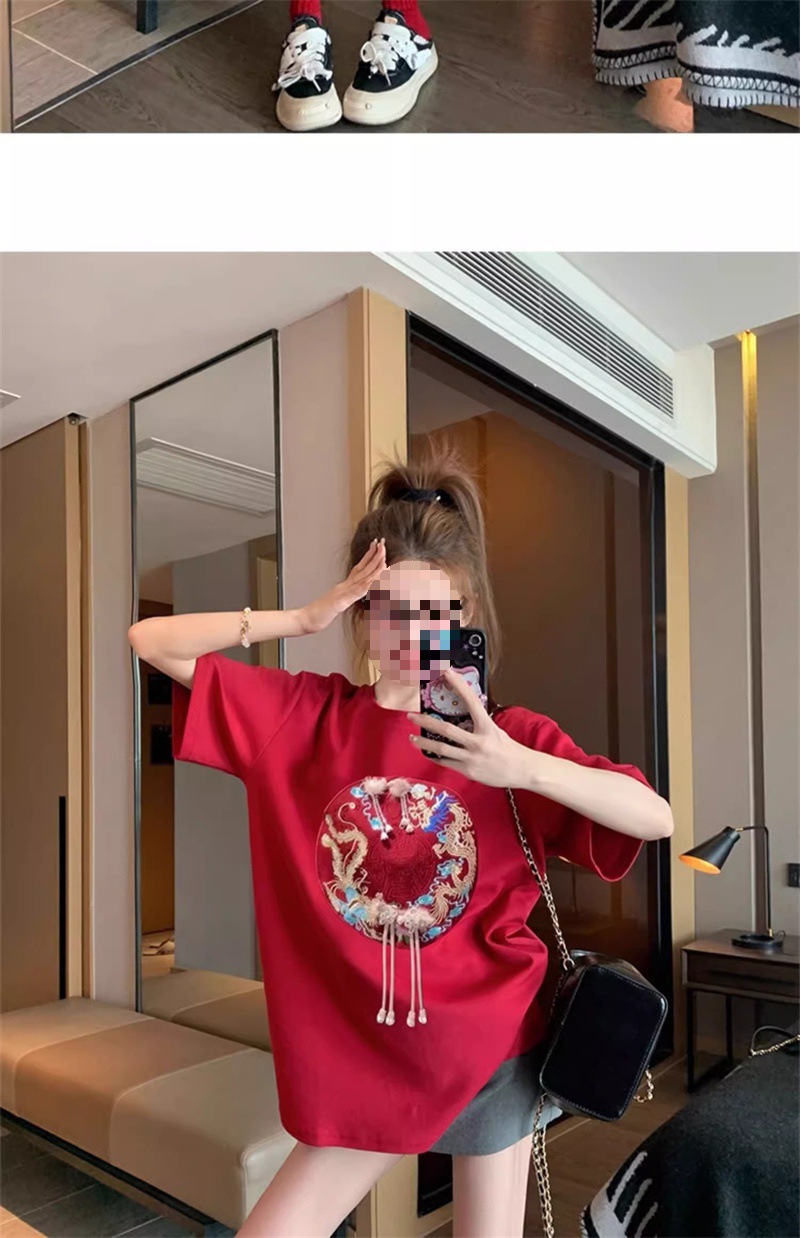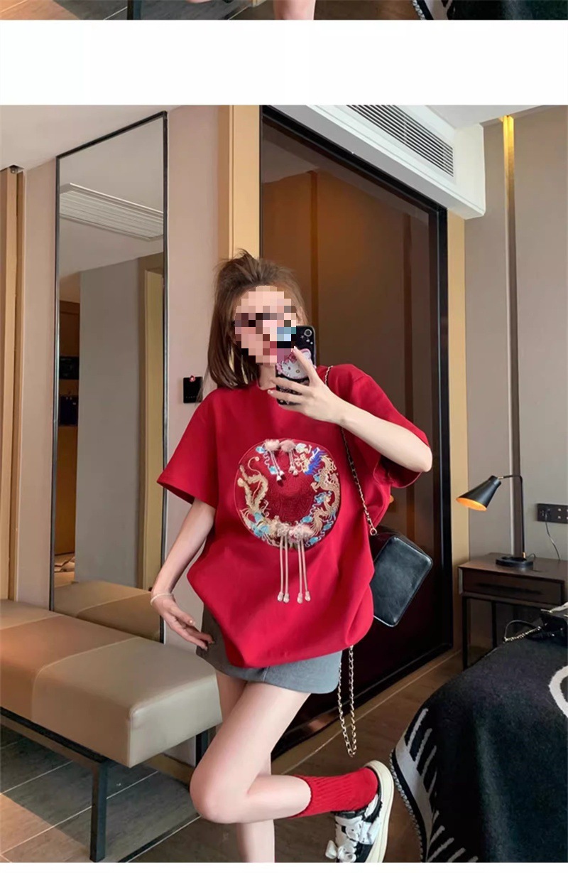 [Name]: New Women's embroidered national trendy style short-sleeved T-shirt