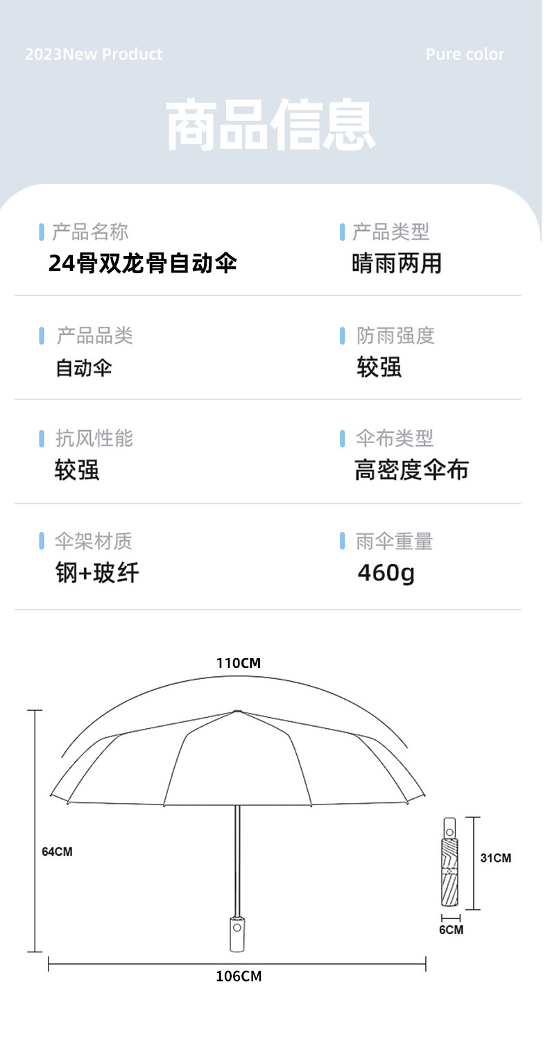 12 bone color matching self-opening umbrella# wutong rice