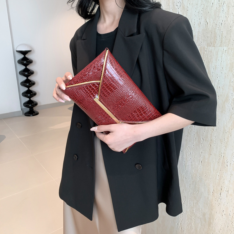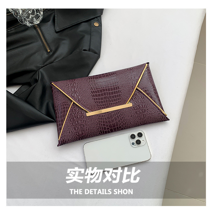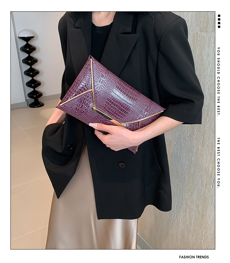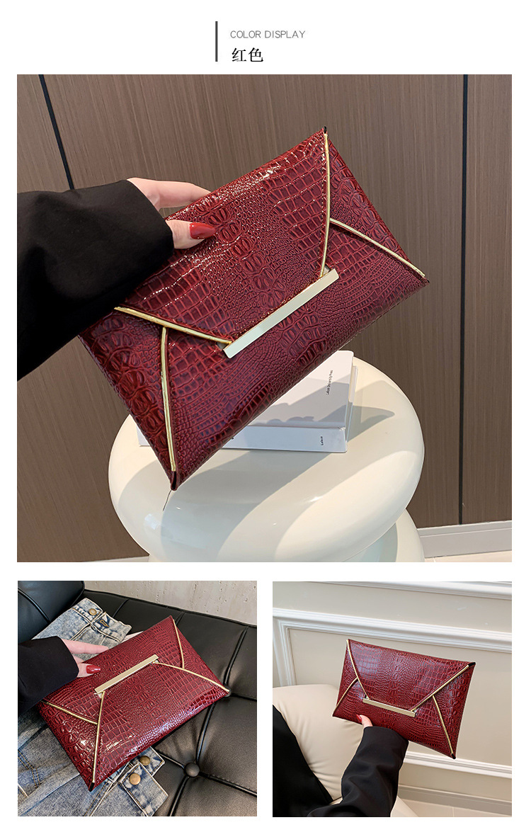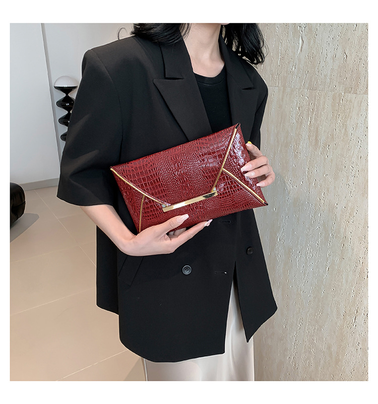 crocodile pattern trendy simple envelope 2024 large capacity spring new personality trendy fashionable stylish square hand bag 中文版