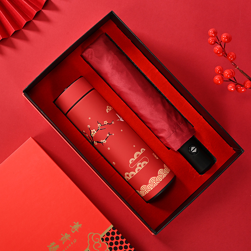 dragon year black digital display cup + self-opening umbrella suit