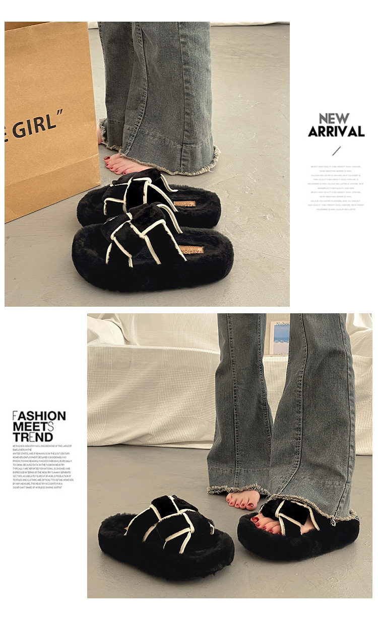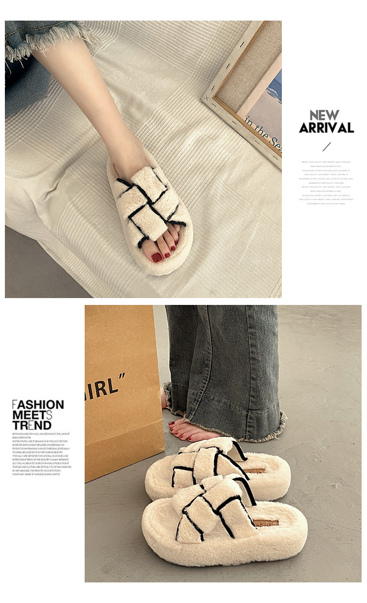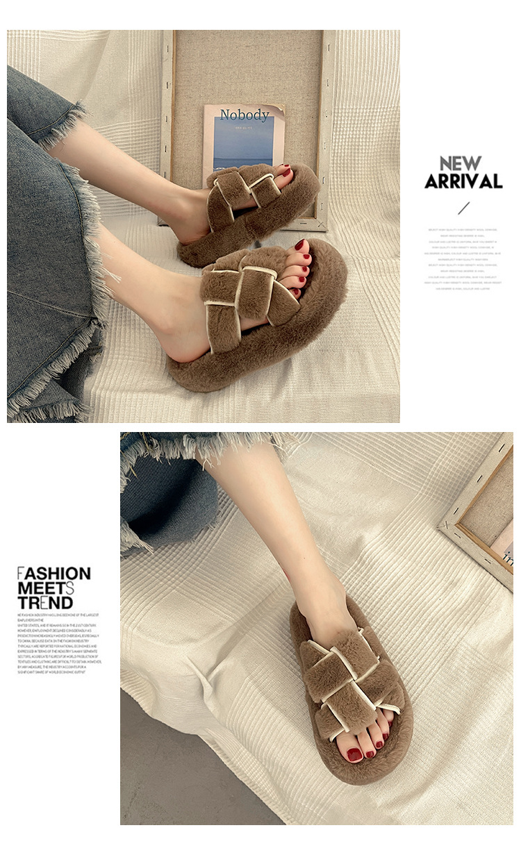 platform platform classic style fluffy slippers women's outer wear 2024 new spring and autumn outing home furry cotton slippers