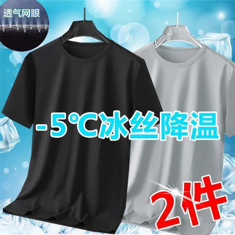 Ice Silk Short-Sleeved T-shirt Men's Summer Loose Large Size Men's Casual All-Match Mesh T-shirt Korean Fashion Clothes