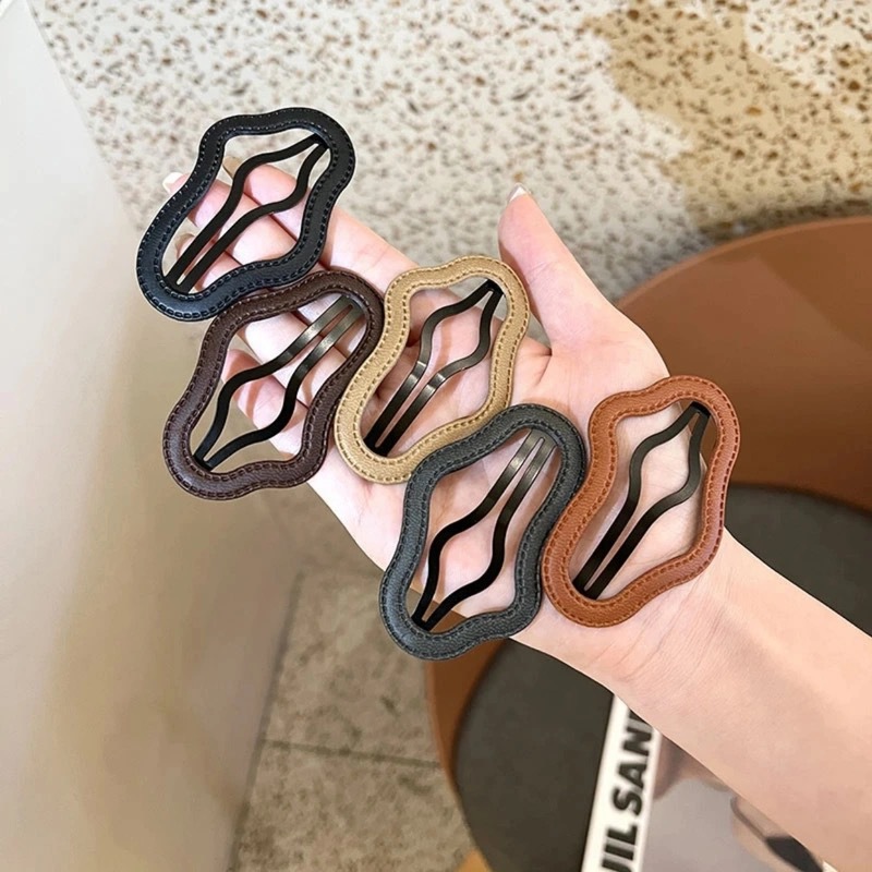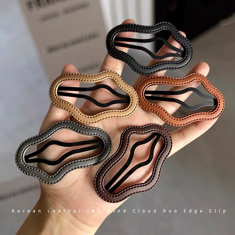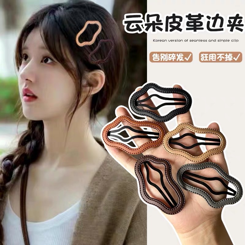 Retro Leather Cloud Hollow Hairpin Female Temperament Side Bangs Broken Hair Bb Clip Back Head Large Word Clip