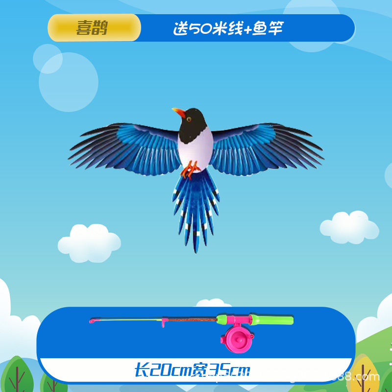 large magpie dynamic kite with 50 m line + fishing rod