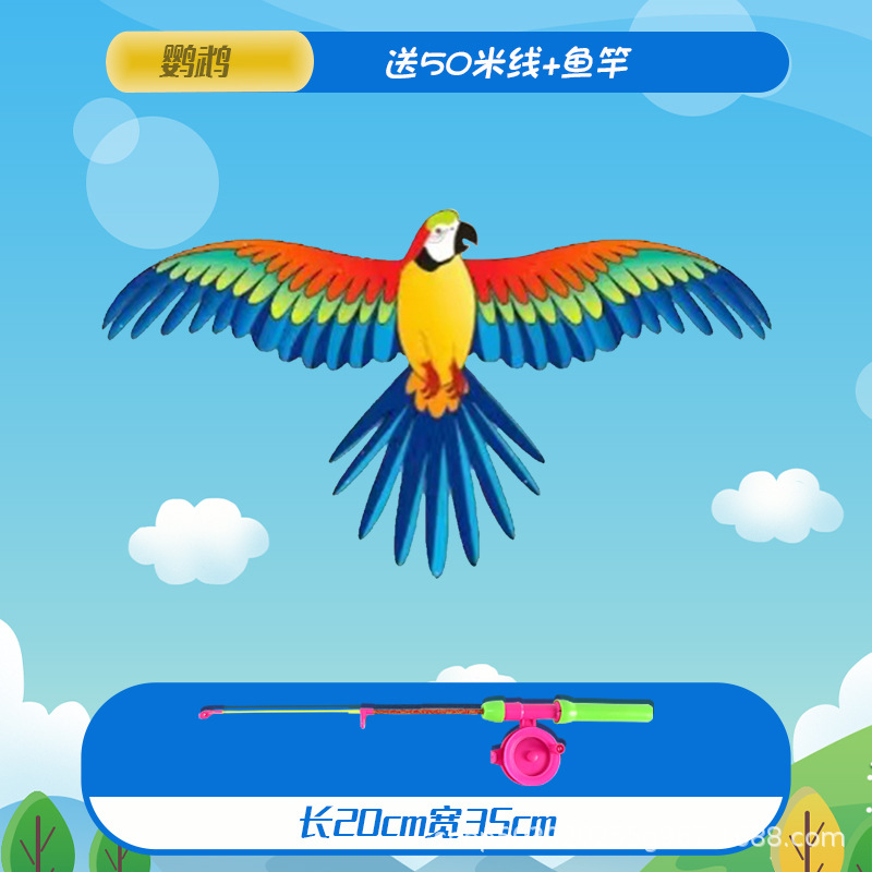 large parrot dynamic kite with 50 m line + fishing rod