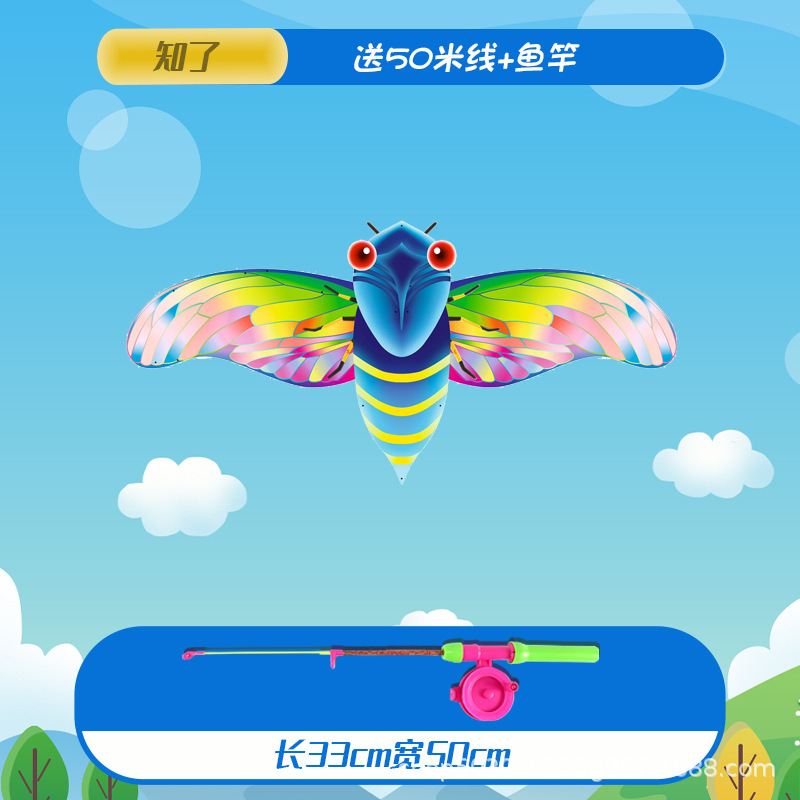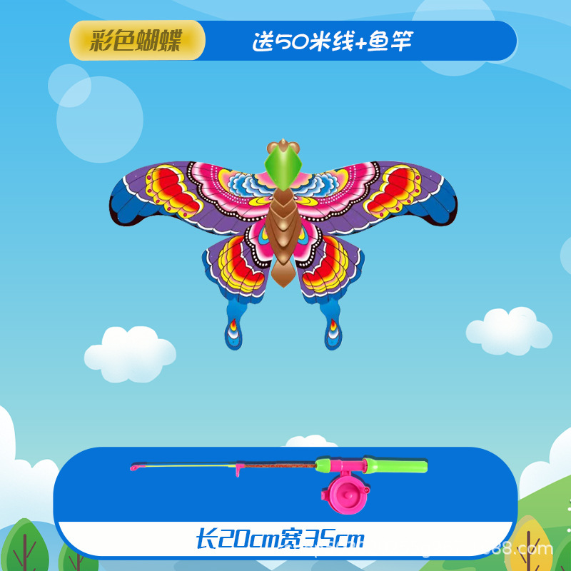 large colorized butterfly dynamic kite with 50 m line + fishing rod