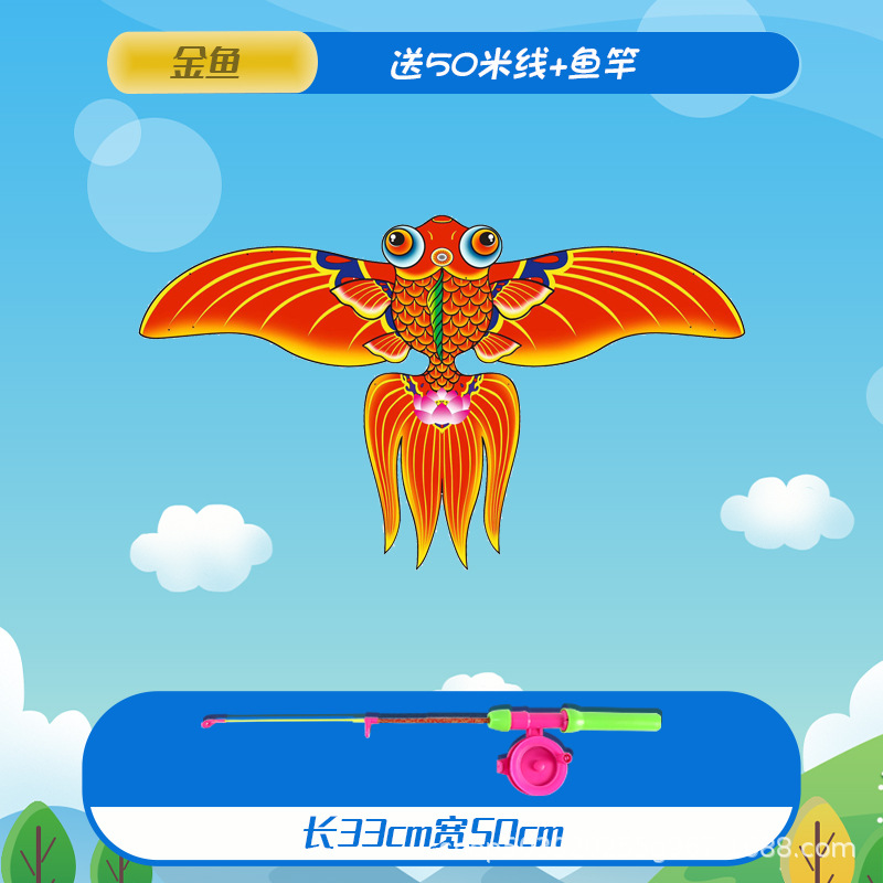 large goldfish dynamic kite with 50 m line + fishing rod