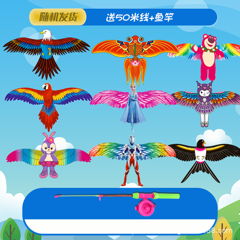 large eagle dynamic kite with 50 m line + fishing rod