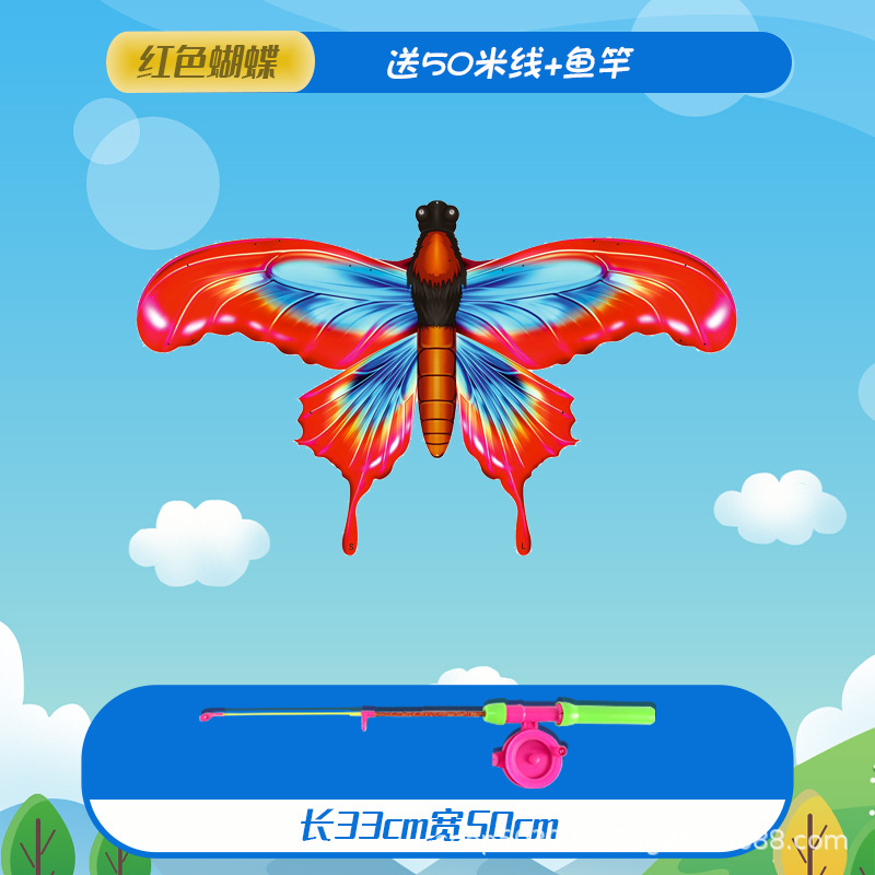 extra large red butterfly dynamic kite with 50 m line + fishing rod