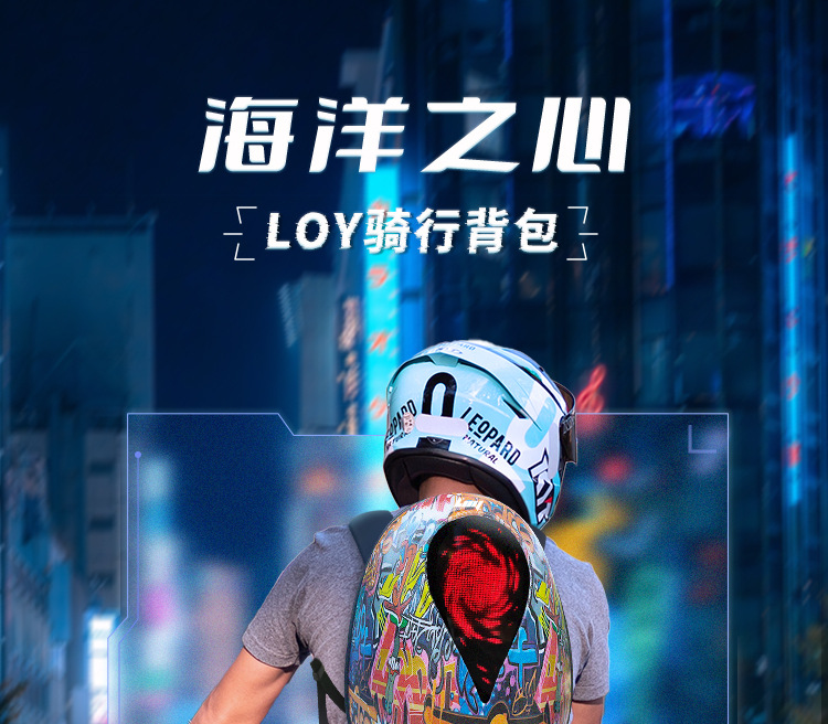 Loy Led Motorcycle Riding Backpack Luminous Eye Bag Hard Shell Waterproof Ocean Heart Helmet Backpack 中文版